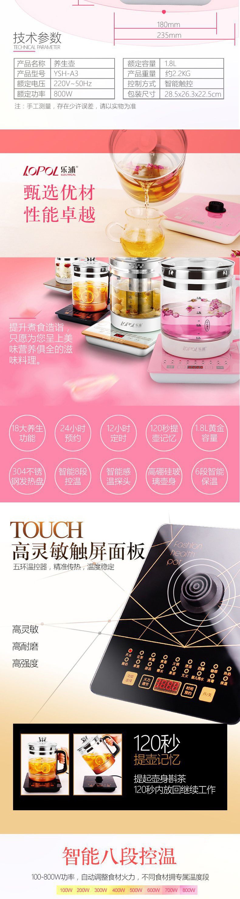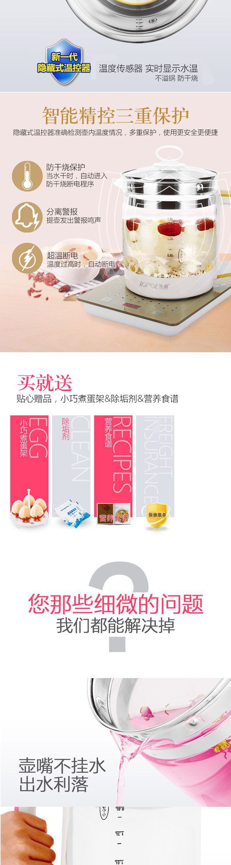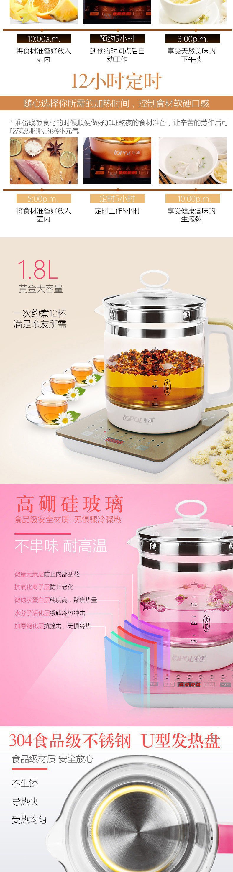 Lepu 1.8L 냄비 두꺼운 유리 전체 자동 다기능 전기 차 주전자 차 메이커 달기 냄비 무료 배송