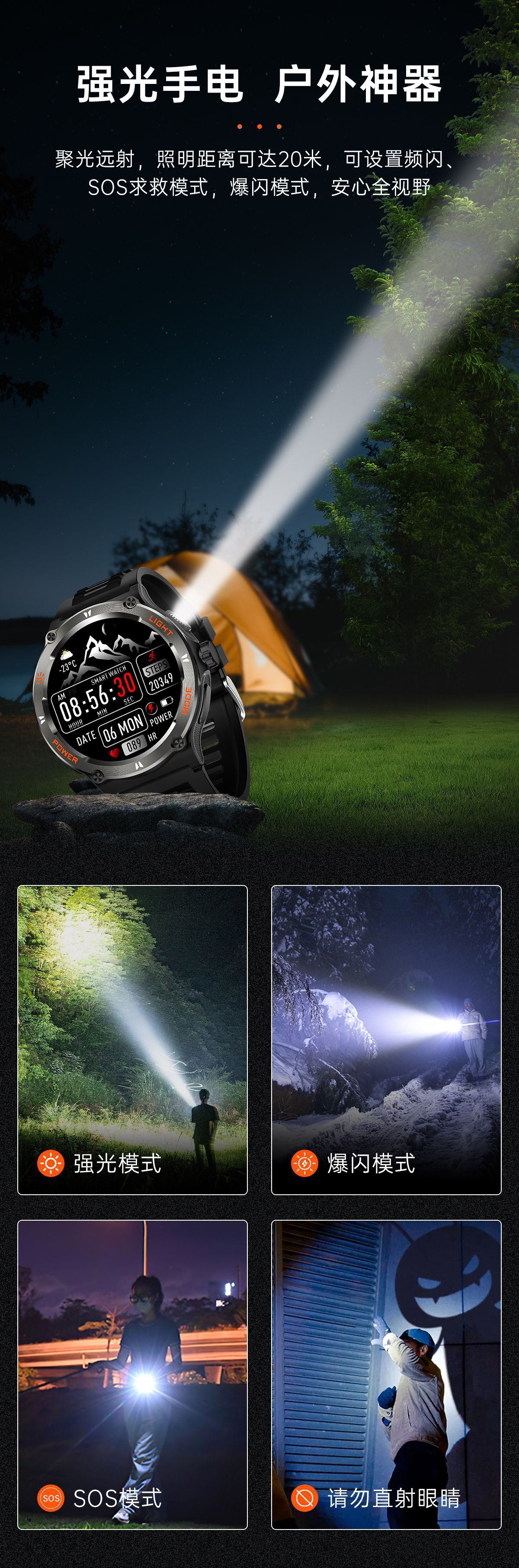 새로운 KT76 통화 블루투스 스마트 시계 야외 스포츠 3-증거 LED 조명 건강 모니터링 스마트 시계