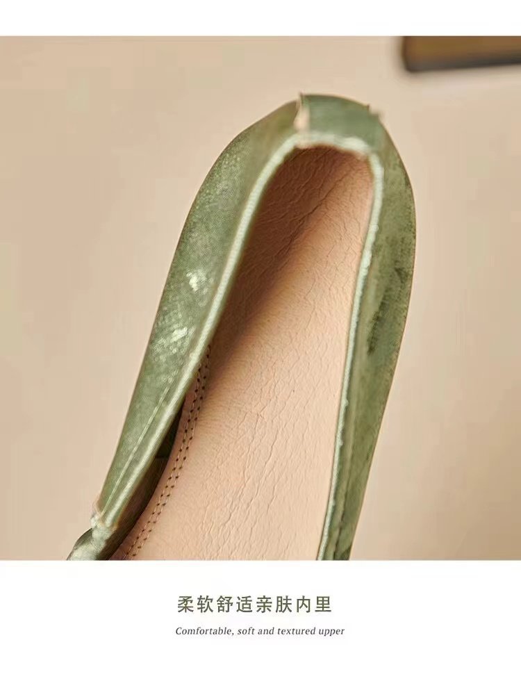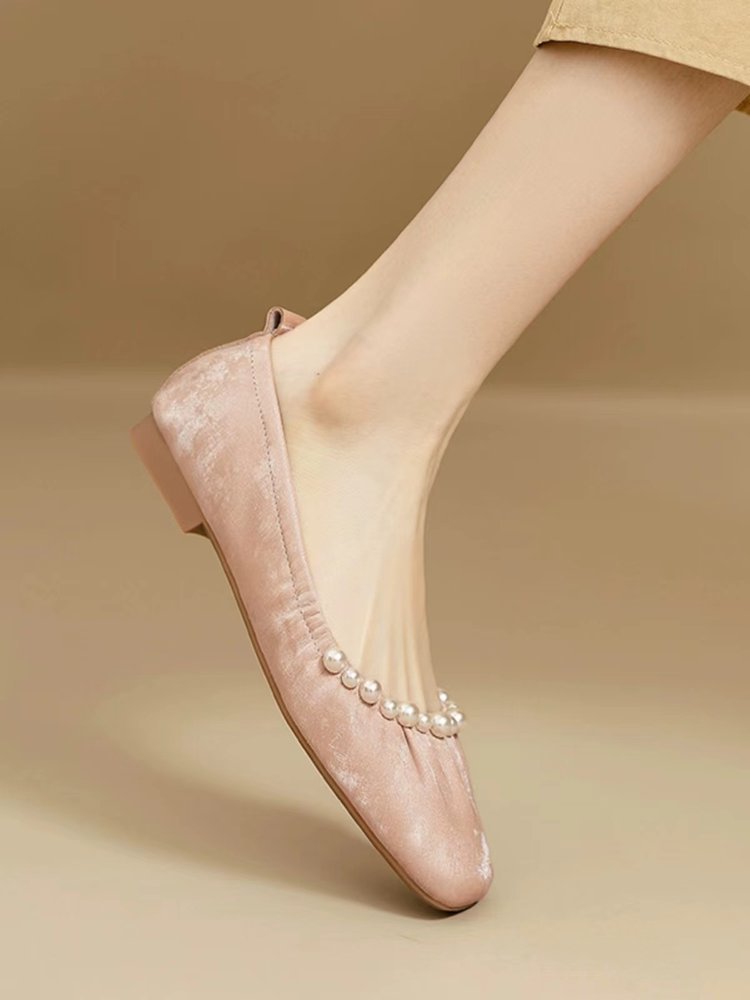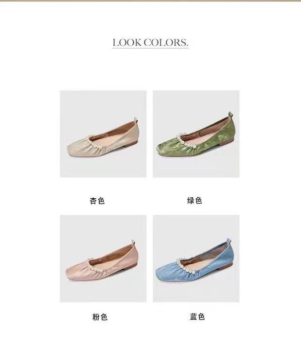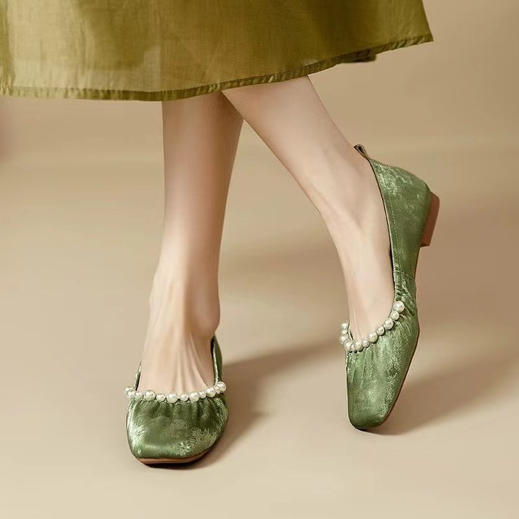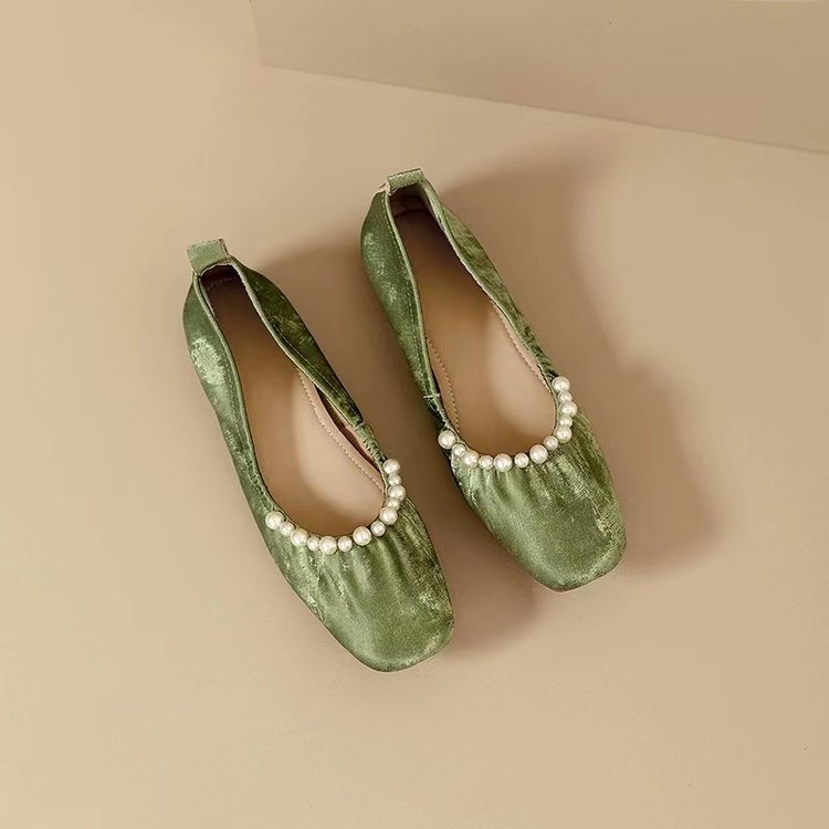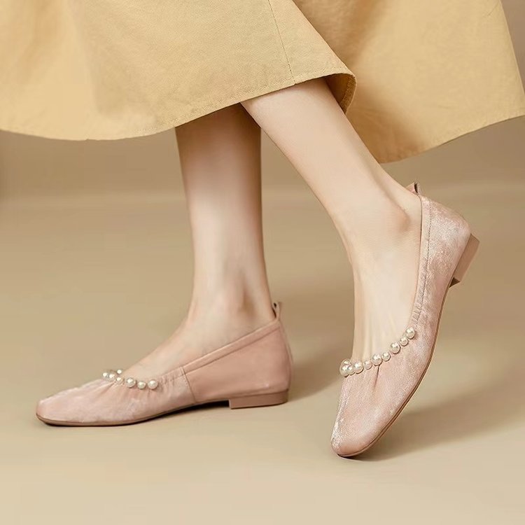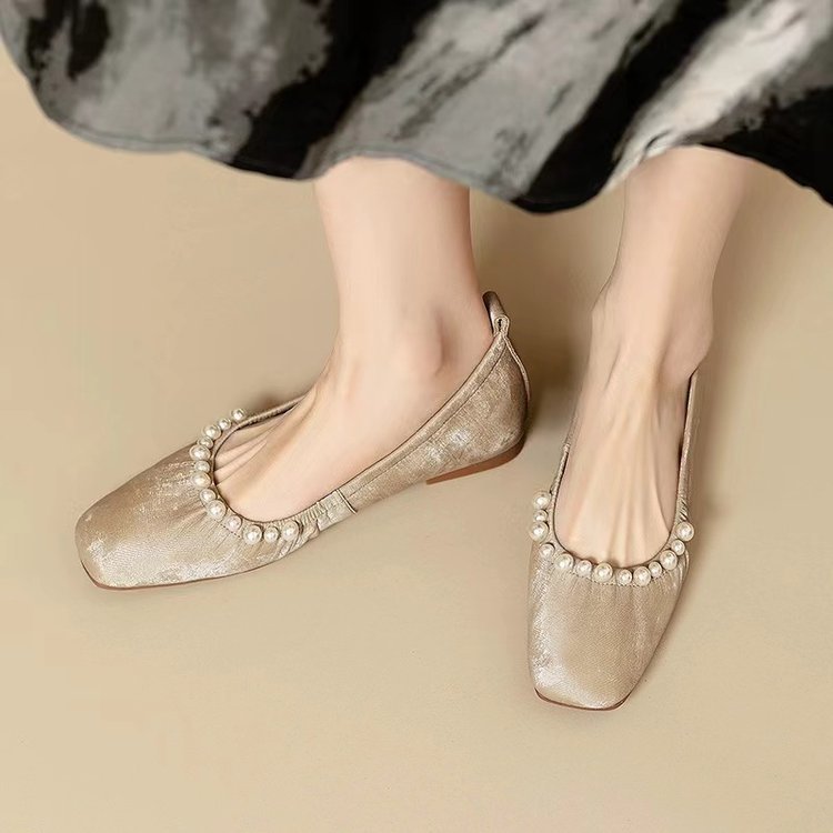 2024 새로운 달콤한 진주 소프트 플랫 발레 신발 여성 중국 스타일 국가 스타일 소프트 콩 신발 밀크 신발스토어 가기