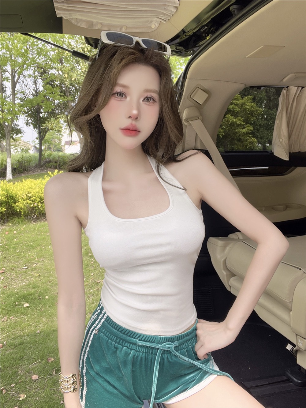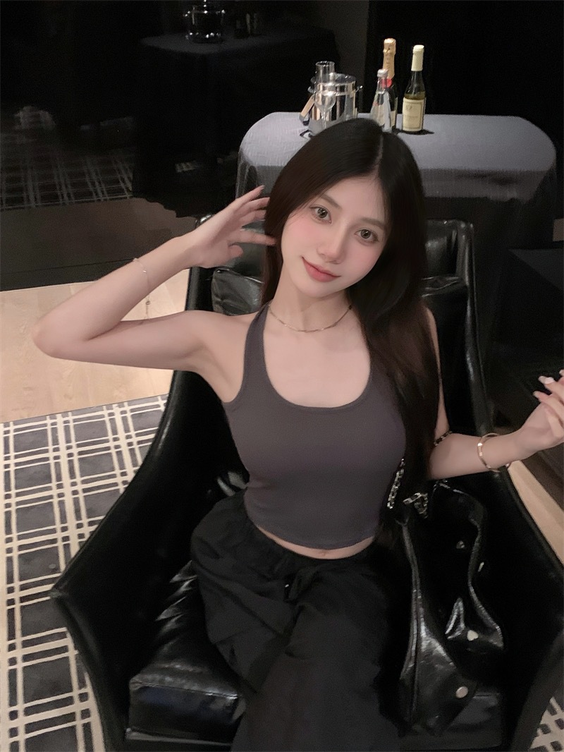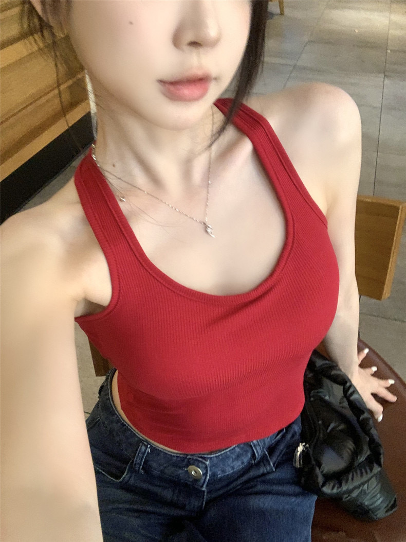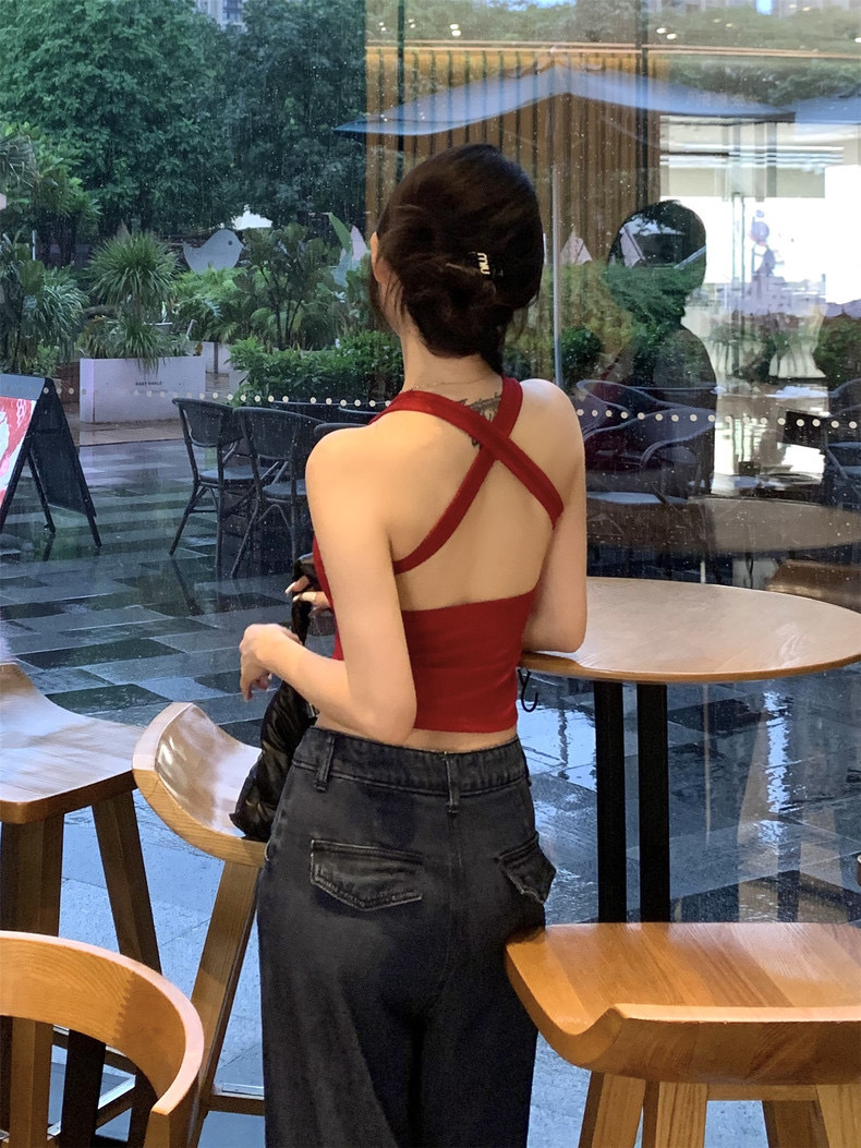 738 # Cotton Back Cross Hollow Sexy Spice Camisole 원피스 여름 여성용 짧은 외부 재킷