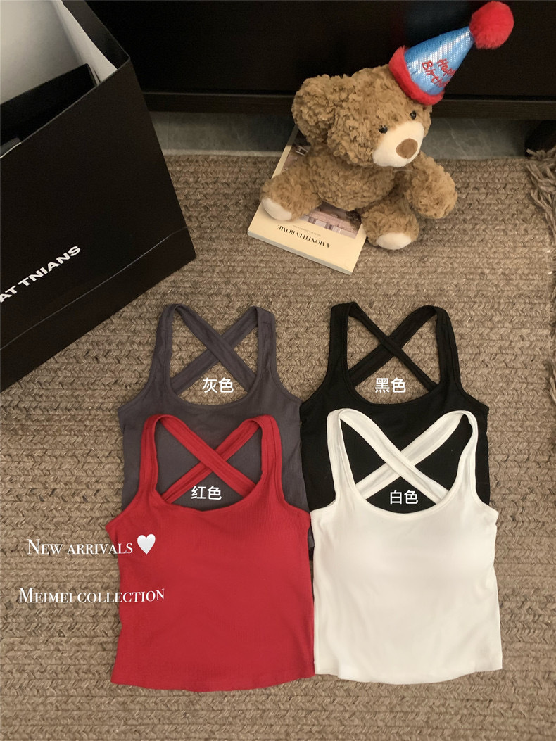 738 # Cotton Back Cross Hollow Sexy Spice Camisole 원피스 여름 여성용 짧은 외부 재킷스토어 가기
