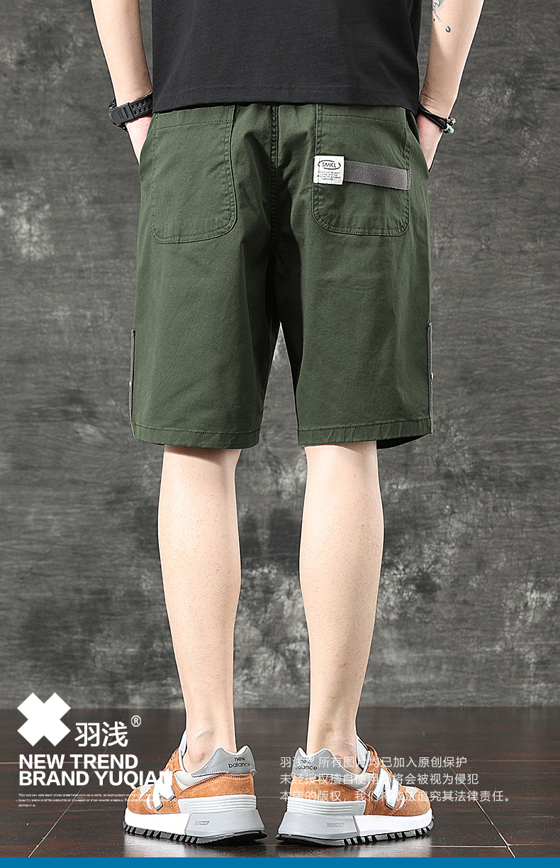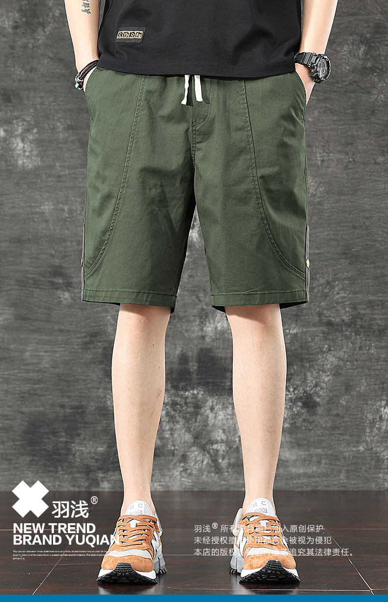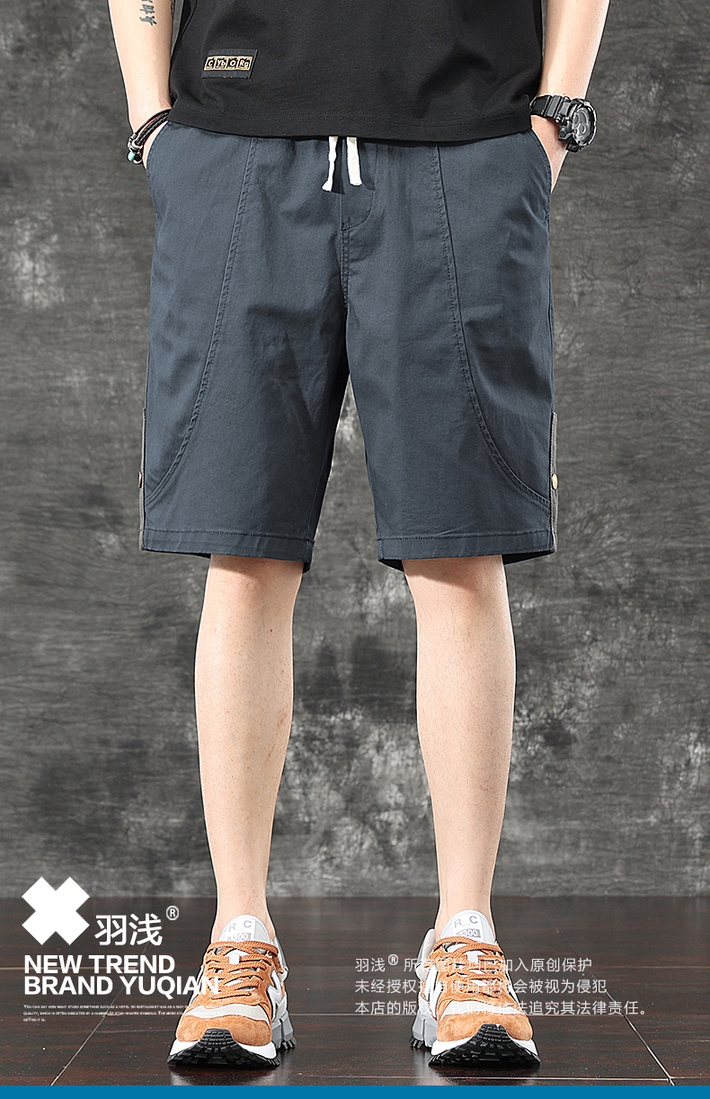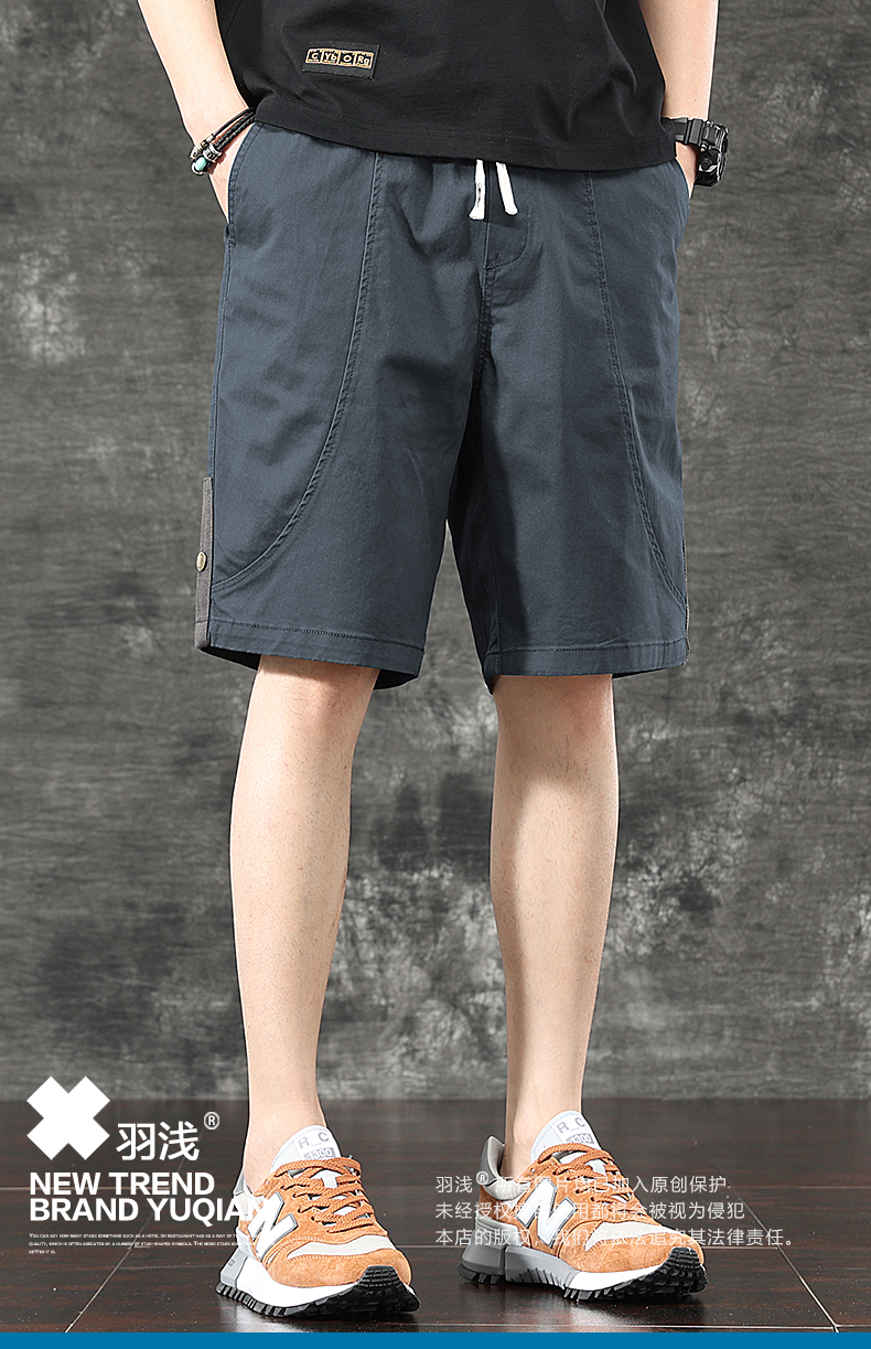 일본식 유행 브랜드 빈티지 캐주얼 반바지 남성용 여름 얇은 느슨한 면 탄성 허리 5 점 툴링 바지