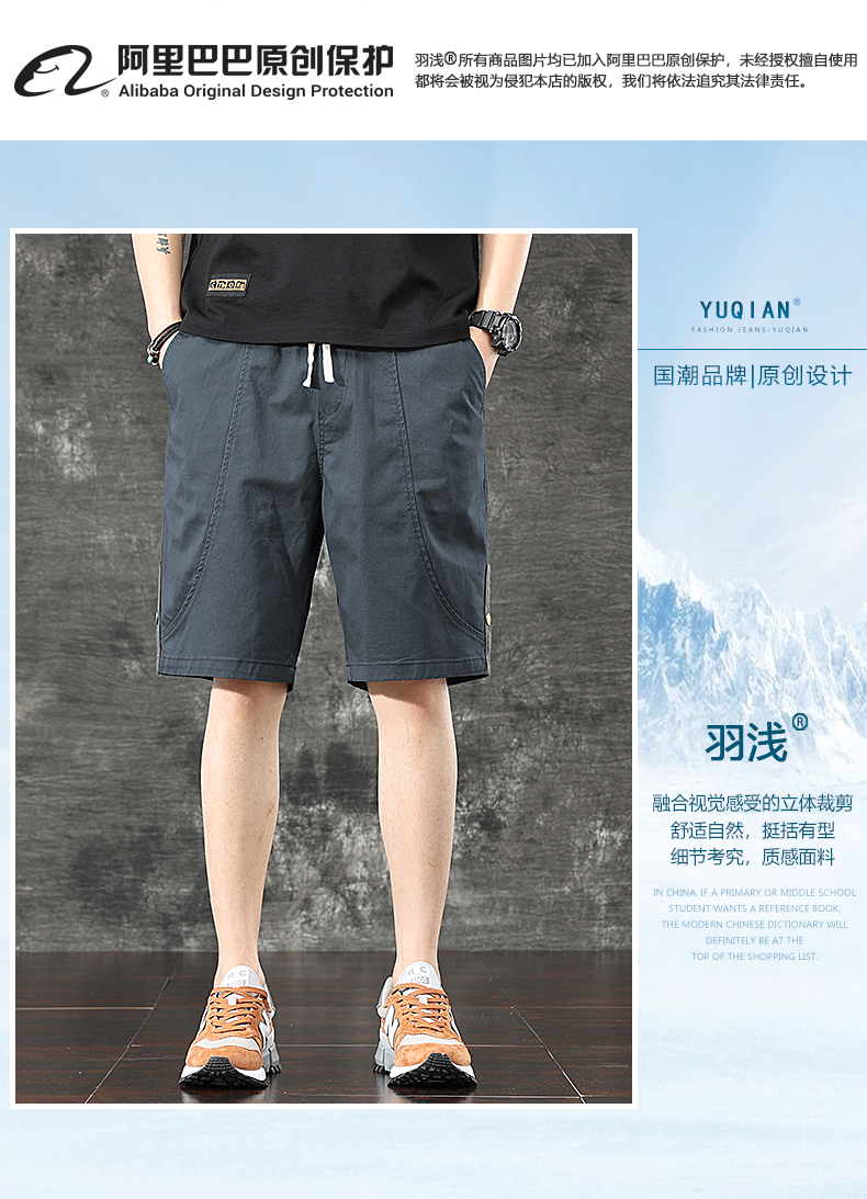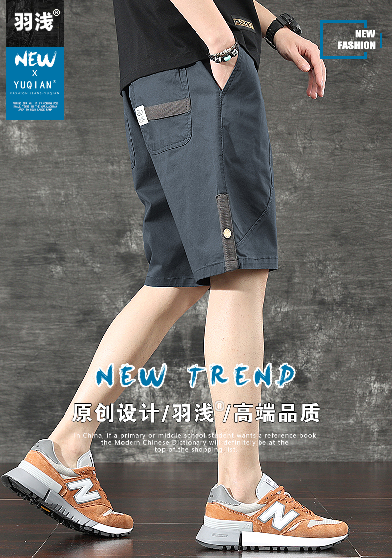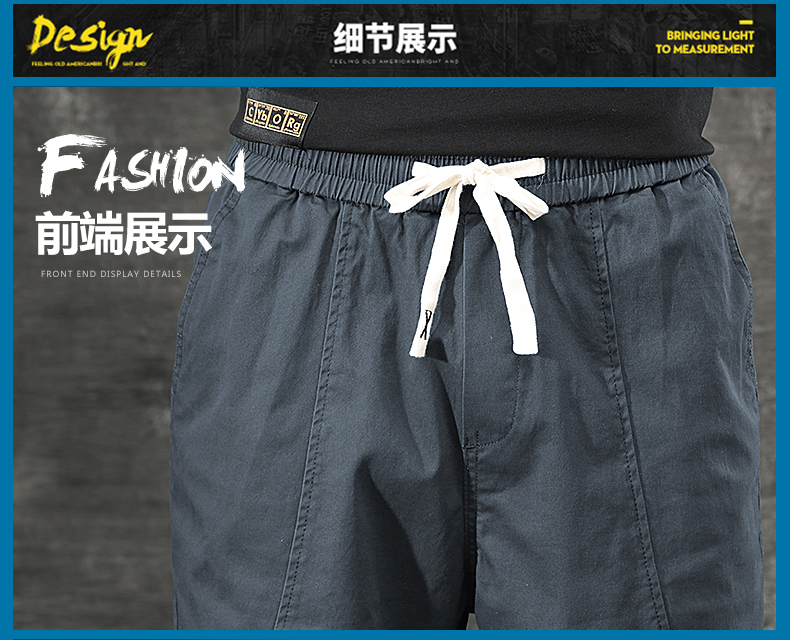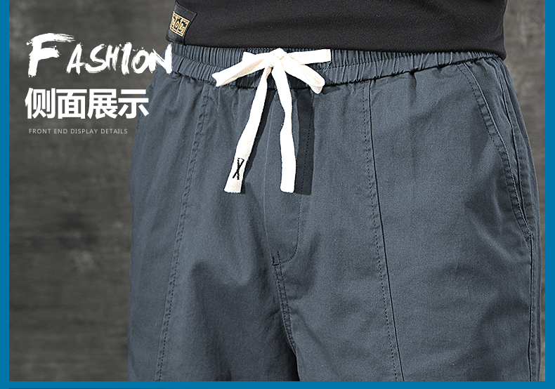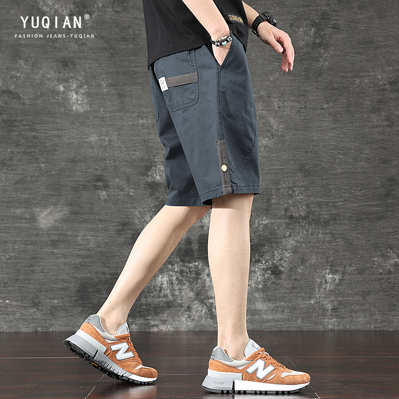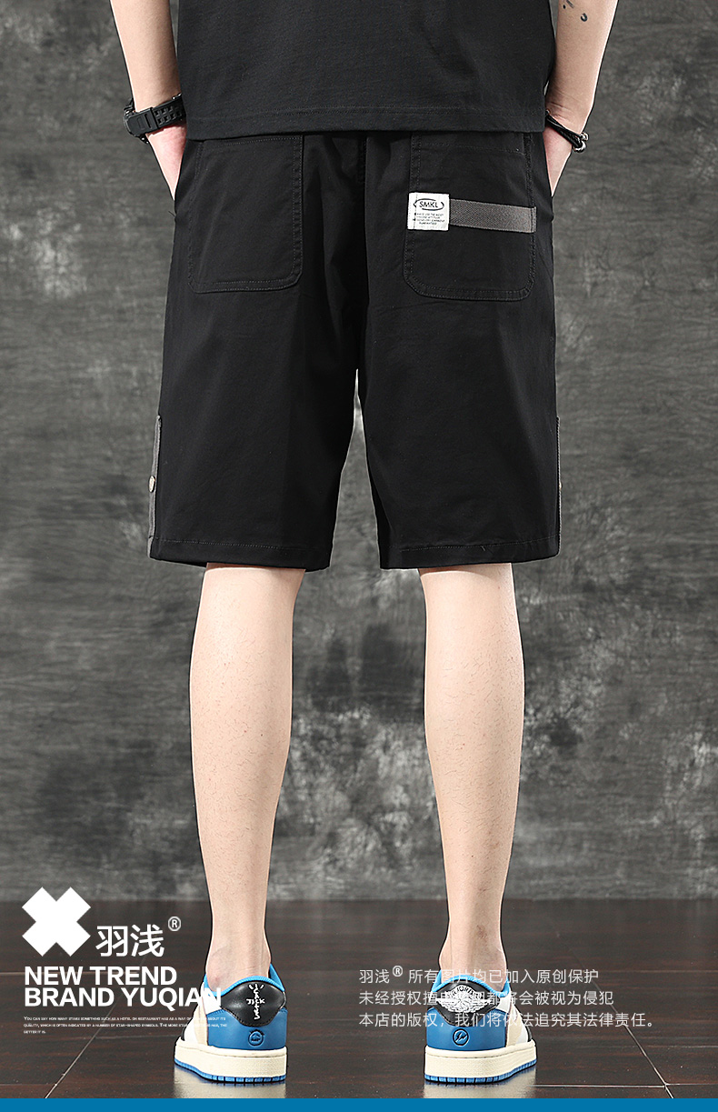 일본식 유행 브랜드 빈티지 캐주얼 반바지 남성용 여름 얇은 느슨한 면 탄성 허리 5 점 툴링 바지