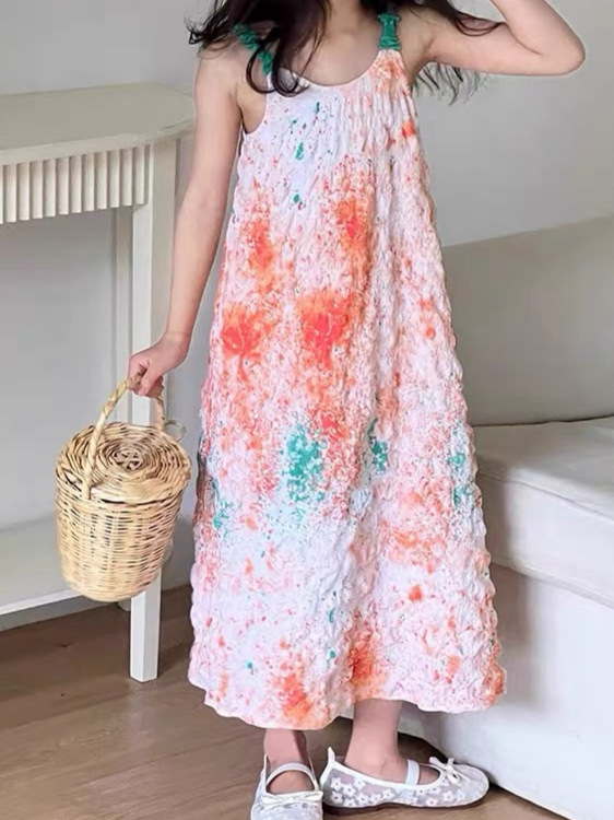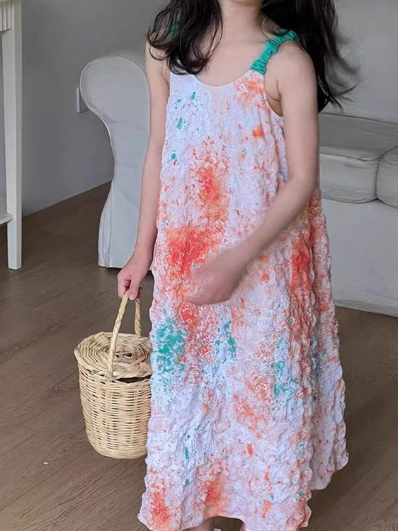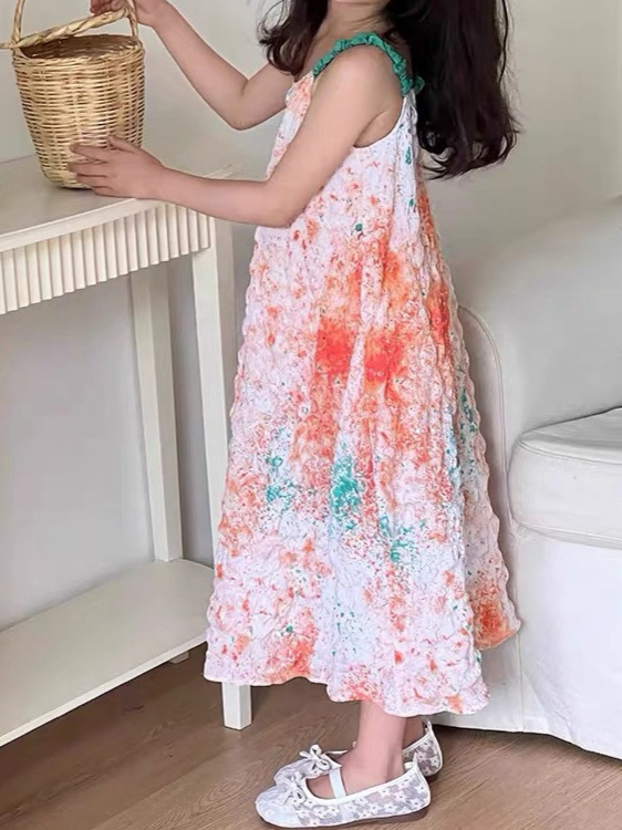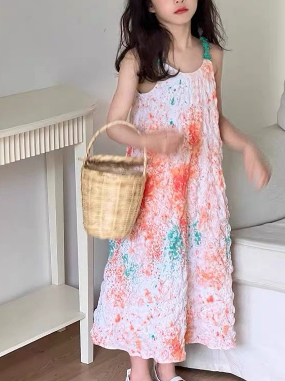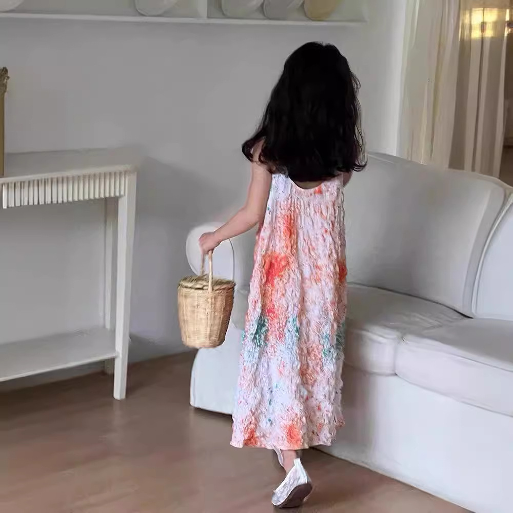 2024 여름 한국 아동복 새 소녀의 신선하고 달콤한 꽃 스커트 서양식 원피스 조끼 스커트