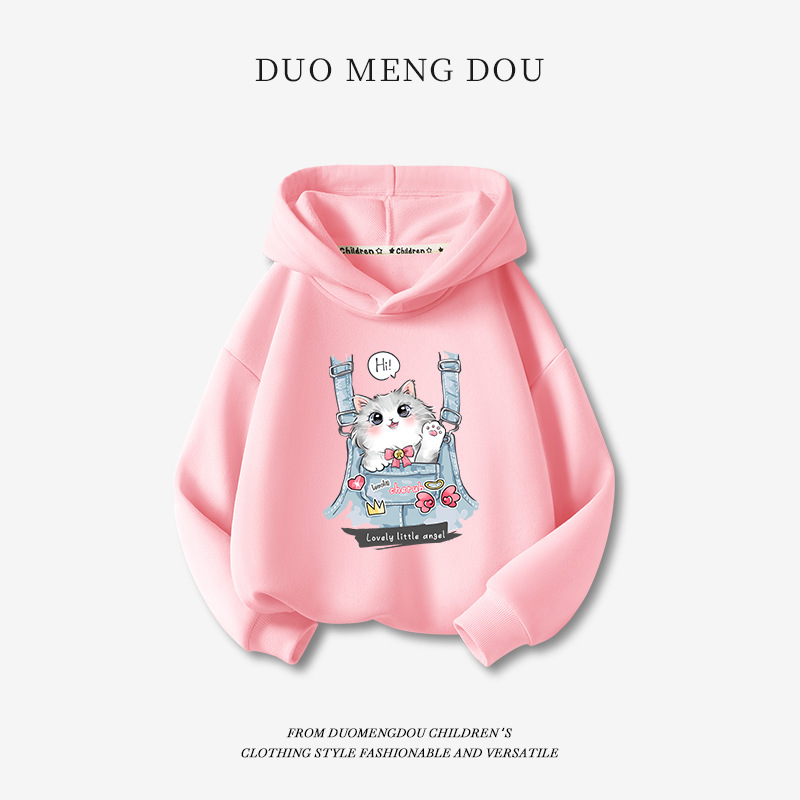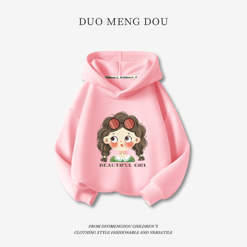 두몽두 여아용 스웨트셔츠 2025 신상 가을 아동 후드티 중대형 아동용 트렌디하고 다용도로 활용 가능한 스포츠웨어 LZ스토어 가기