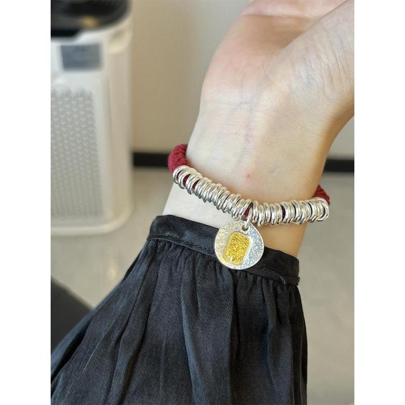 구슬이 달린 빨간 밧줄 여성용 연꽃 행운의 실버 팔찌가있는 새로운 도착 팔찌스토어 가기