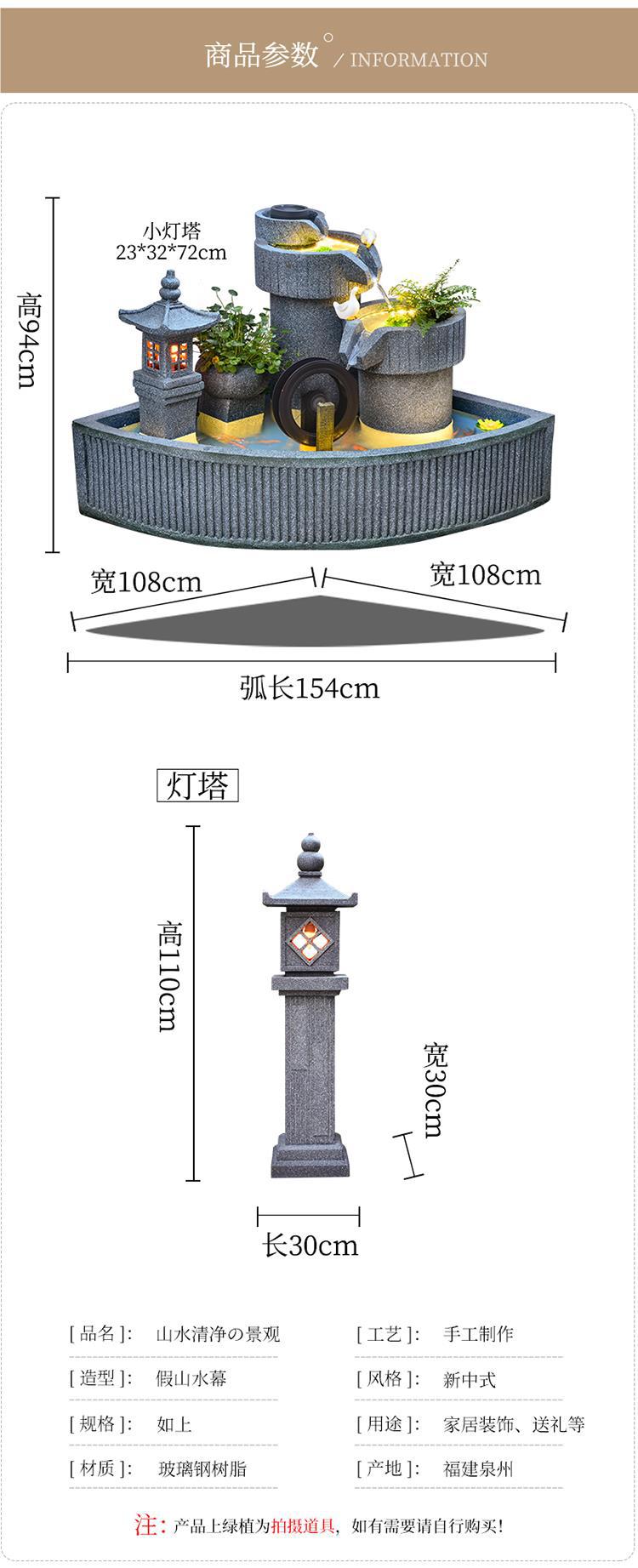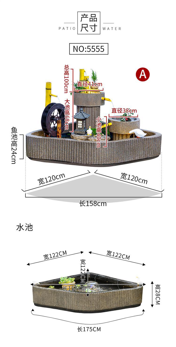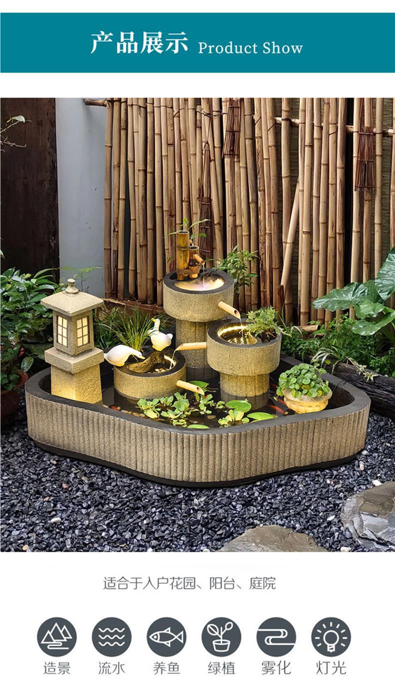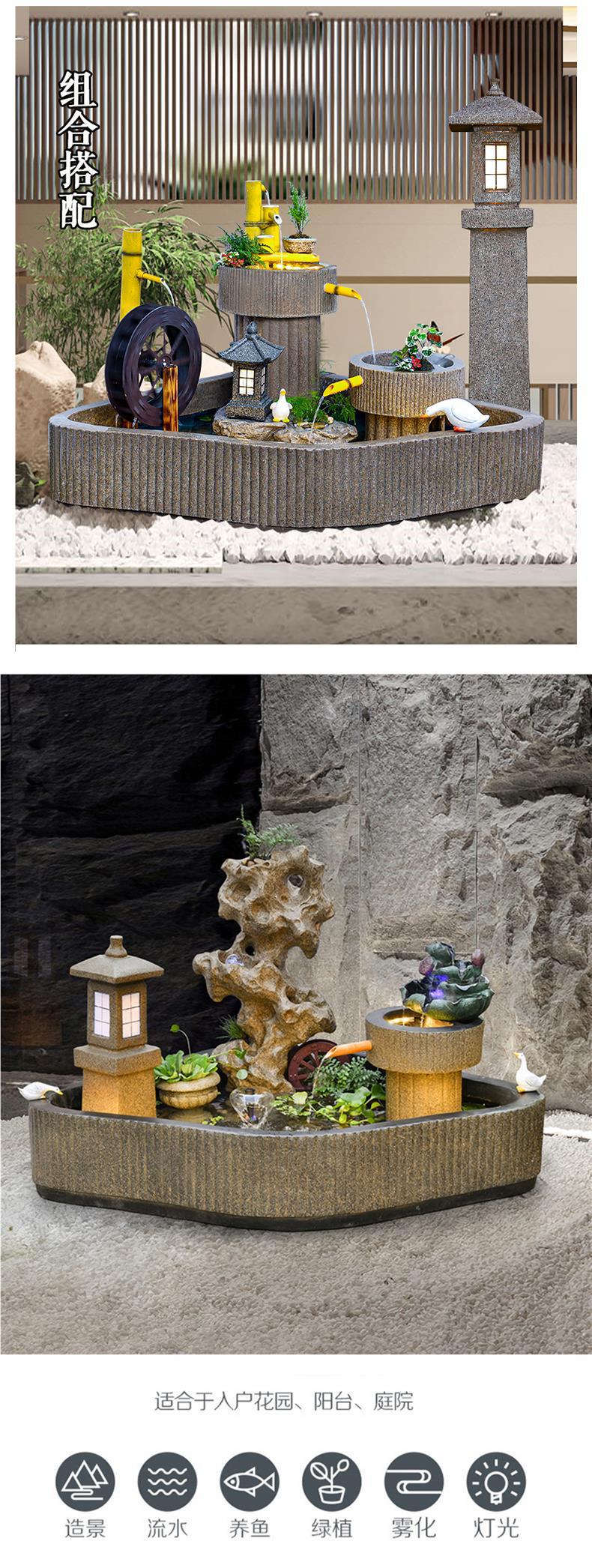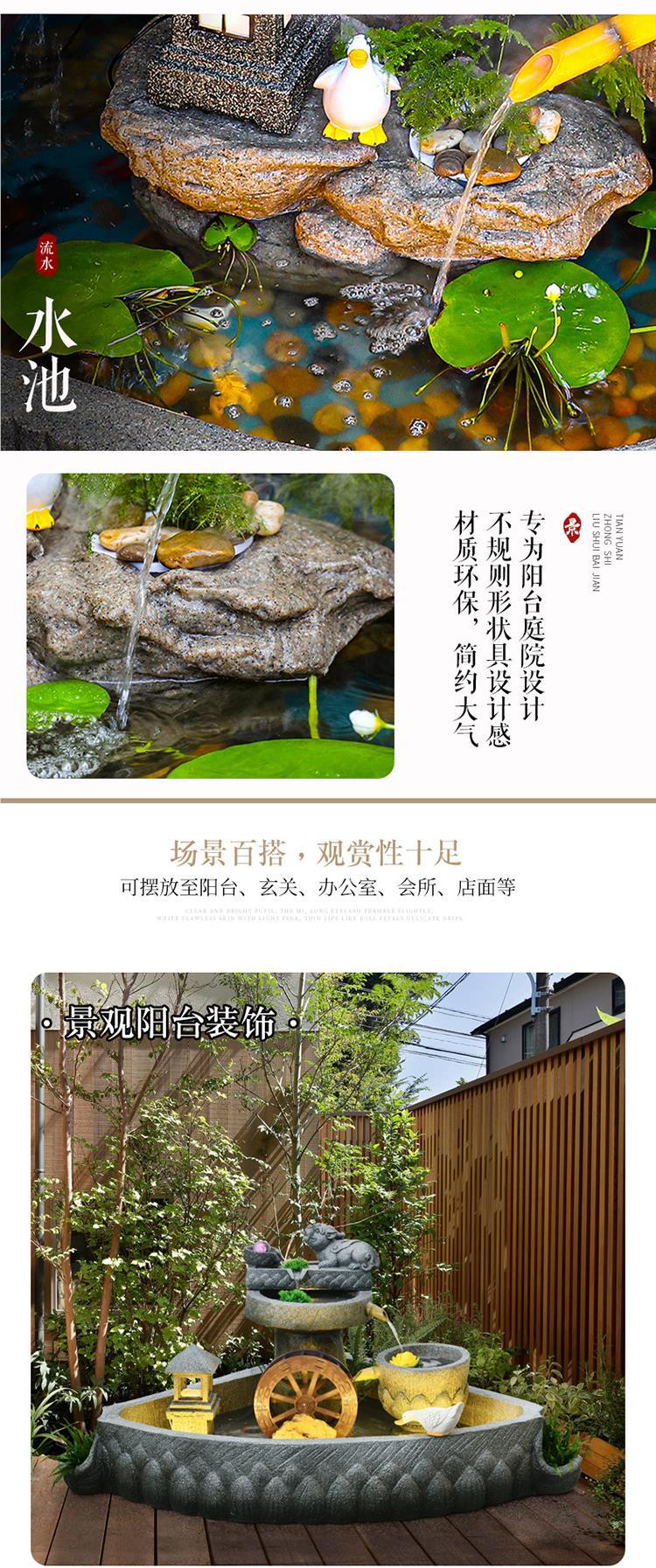 대형 바위 물고기 연못 흐르는 물 장식 순환 물 시스템 실내 코너 발코니 안뜰 정원 분수 풍경스토어 가기