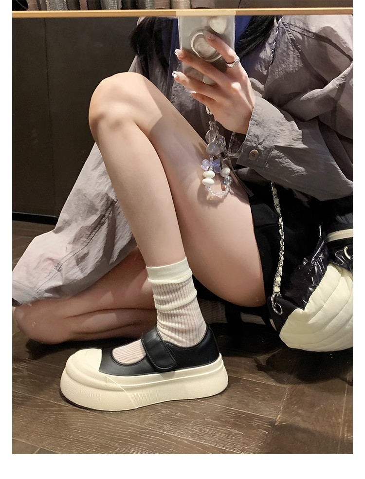 재고 포도 엄마 큰 머리 벨크로 플랫폼 두꺼운 바닥 높이 증가 라운드 머리 얕은 입 메리 제인 작은 가죽 신발스토어 가기