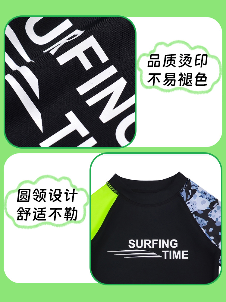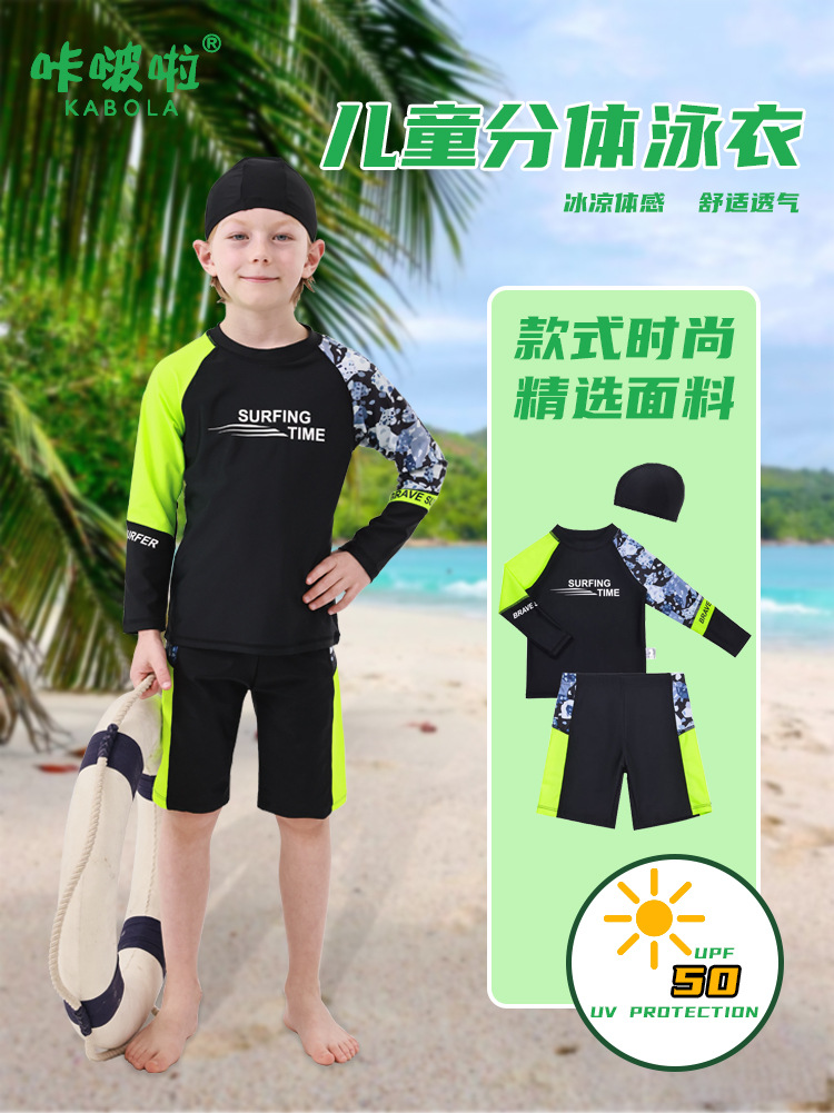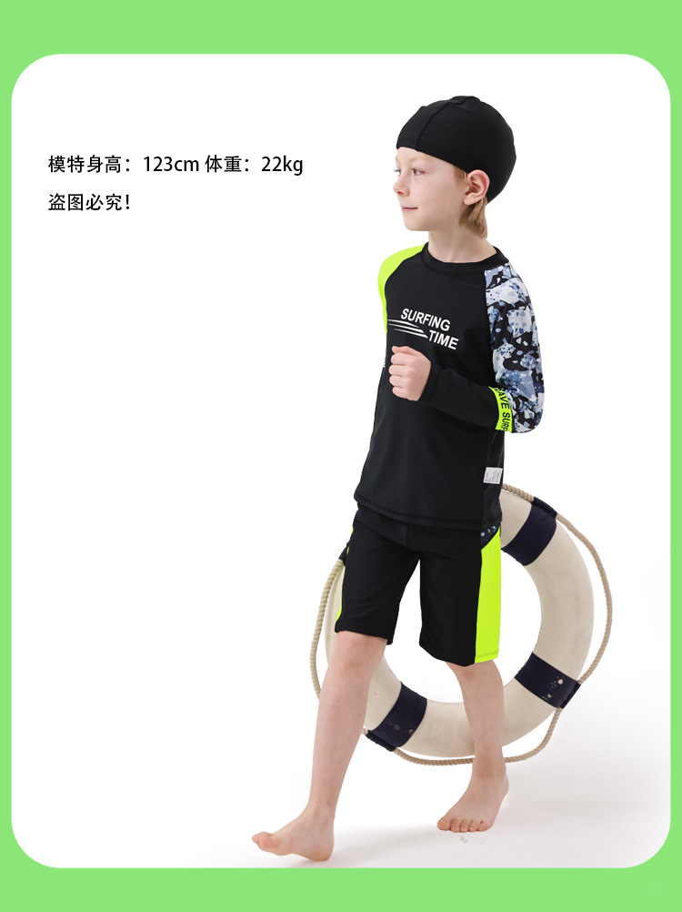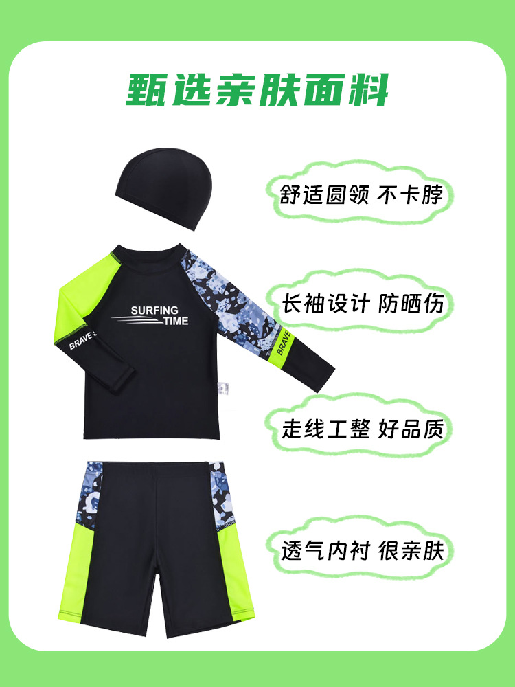 어린이 수영복 소년의 새로운 긴 소매 빠른 건조 태양 보호 중형 및 대형 어린이 형광 반바지 수영복 아기 소년의 수영복
