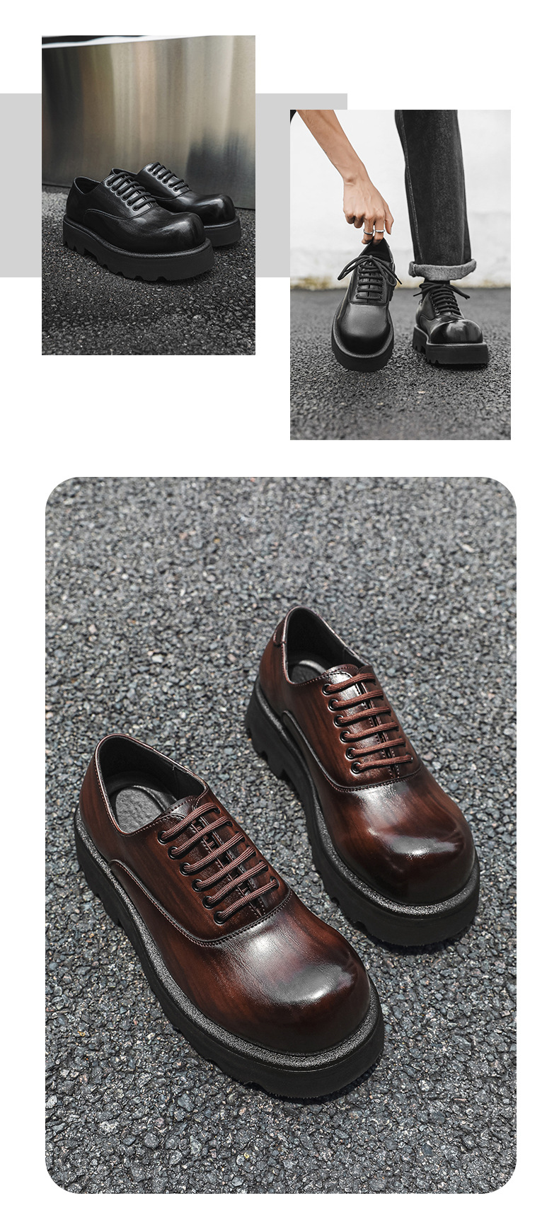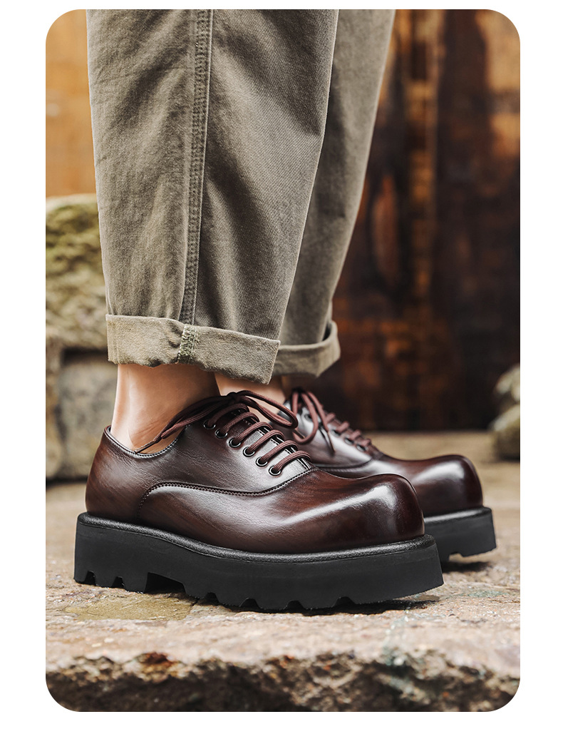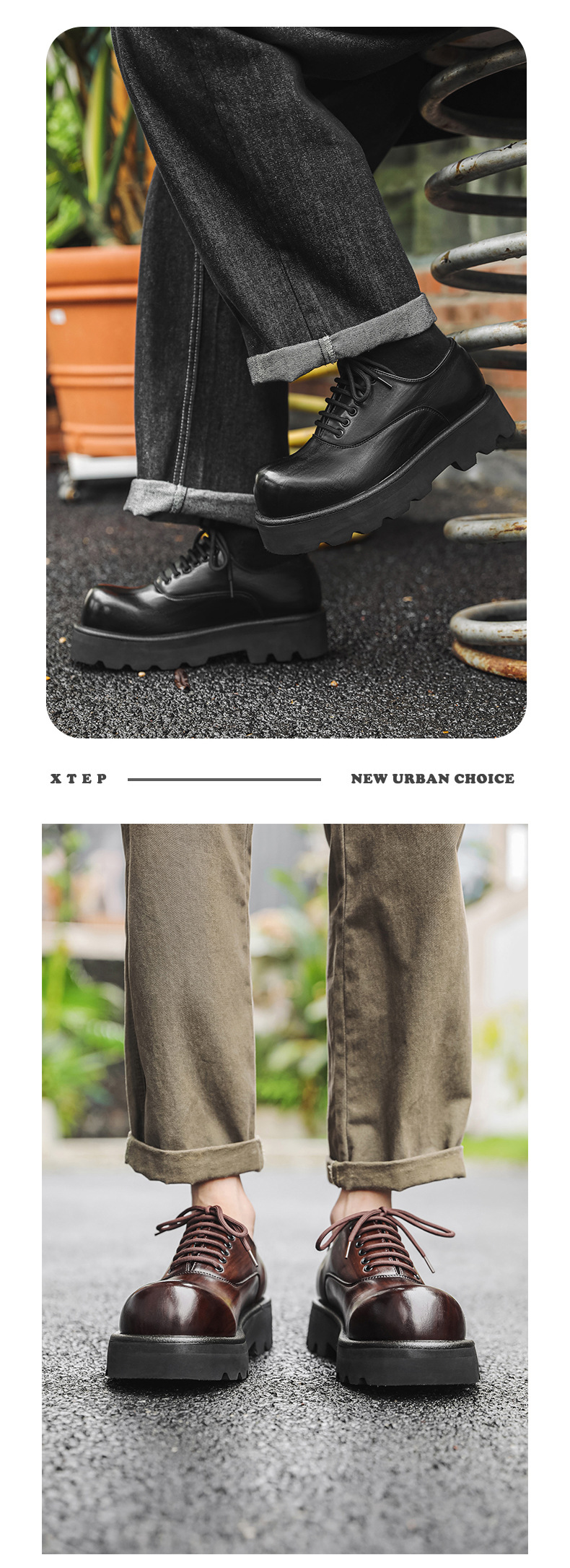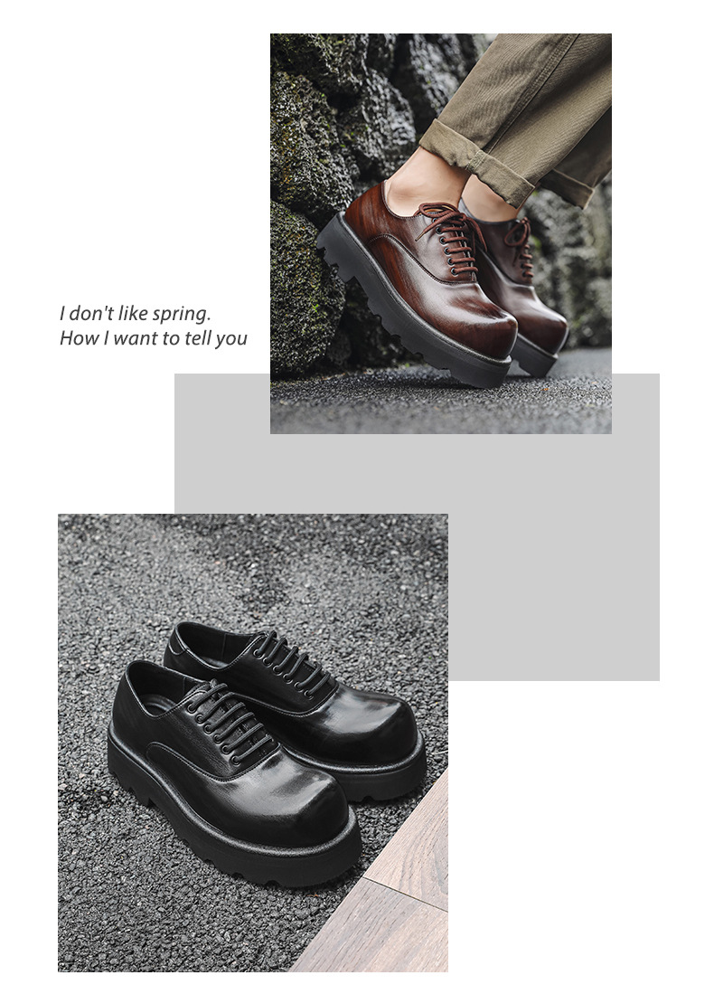 2024 새로운 캐주얼 가죽 신발 남자 한국 스타일 유행 올 매치 통기성 신발 영국 스타일 플랫폼 원피스 남성 신발스토어 가기