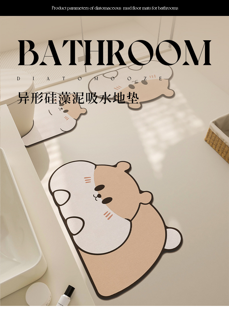 만화 욕실 매트 디 아톰 진흙 흡수성 빠른 건조 U 자형 화장실 가장자리 매트 3 피스 먼지 방지 미끄럼 방지 매트스토어 가기