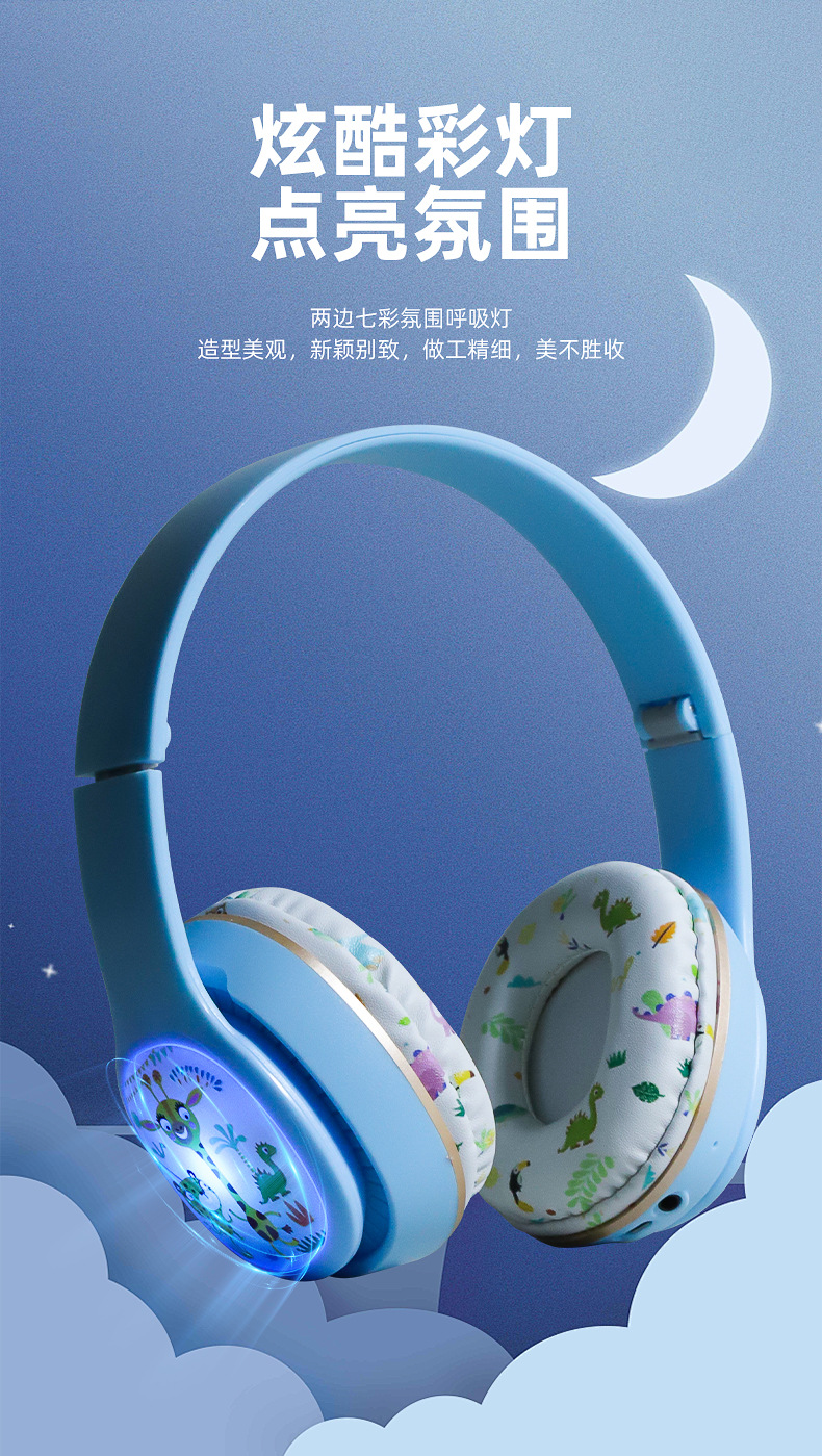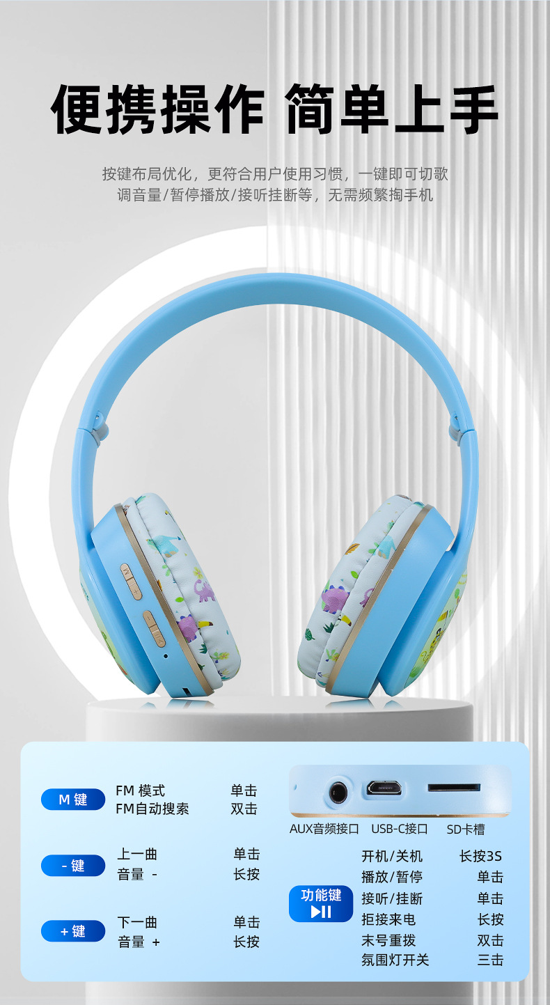 공장 직접 판매 만화 블루투스 헤드셋 무선 헤드 장착형 발광 플러그인 카드 접이식 스테레오 블루투스 헤드셋스토어 가기
