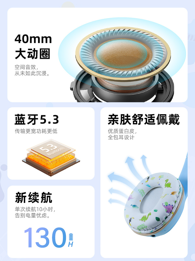 공장 직접 판매 만화 블루투스 헤드셋 무선 헤드 장착형 발광 플러그인 카드 접이식 스테레오 블루투스 헤드셋