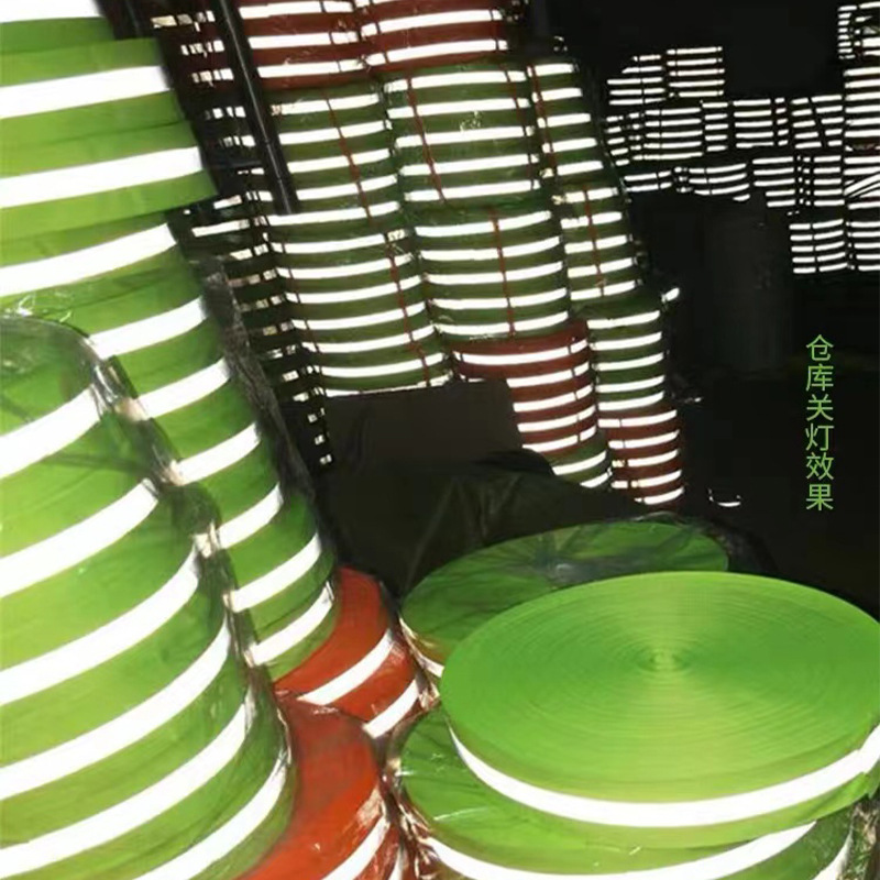 공장 도매 고휘도 반사 스트립 웨빙 야간 경고 테이프 의류 액세서리 형광 천 스트립 폴리 에스터 반사 웨빙스토어 가기