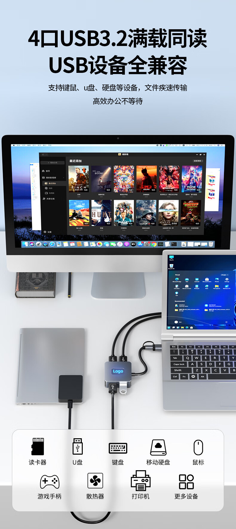 노트북 확장 도크 4 대 1 USB3.2gen2 10gbps HUB 듀얼 헤드 타입 c 허브 도매