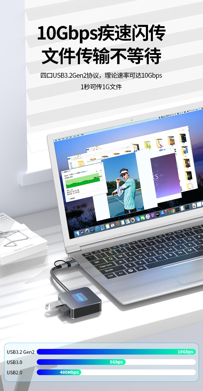노트북 확장 도크 4 대 1 USB3.2gen2 10gbps HUB 듀얼 헤드 타입 c 허브 도매스토어 가기