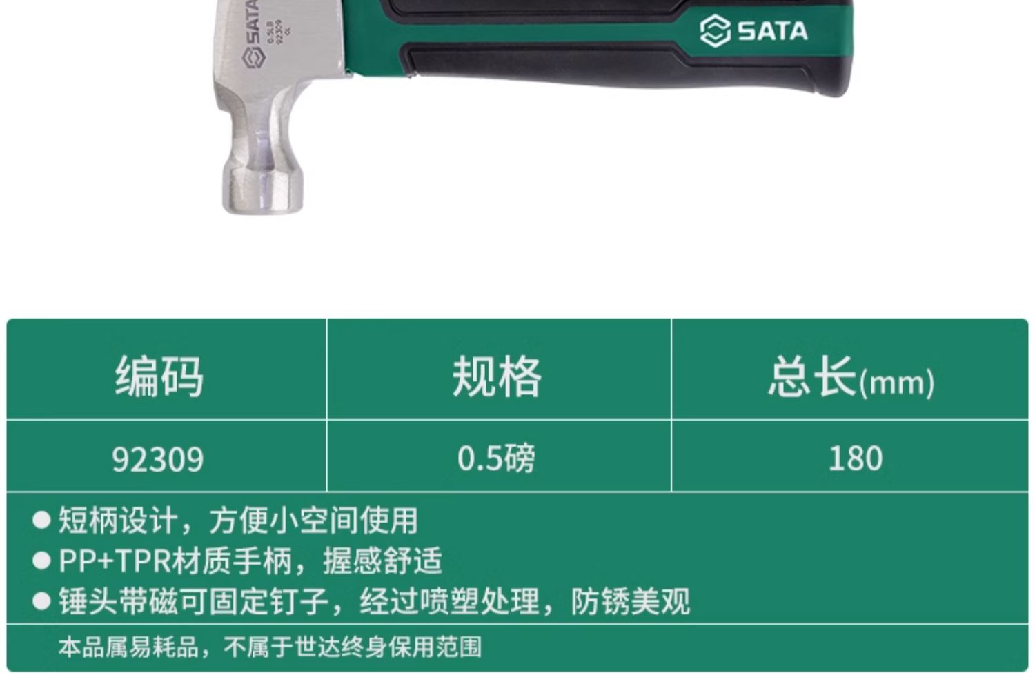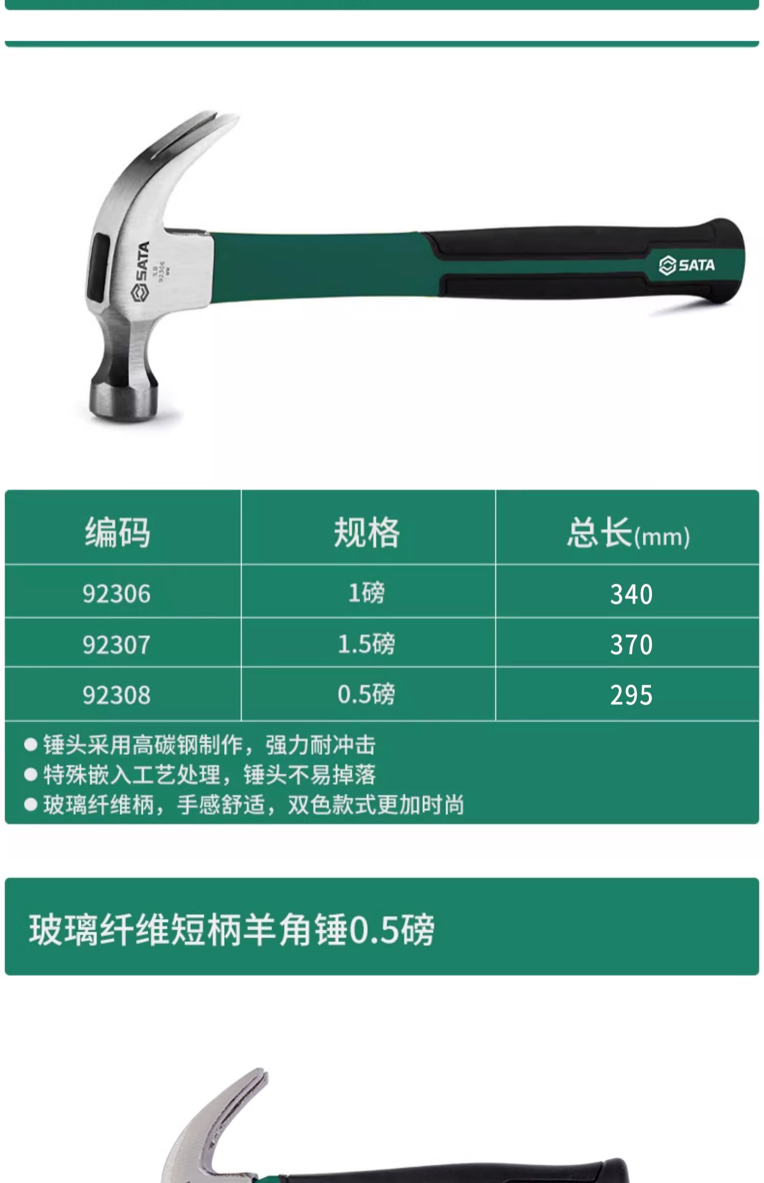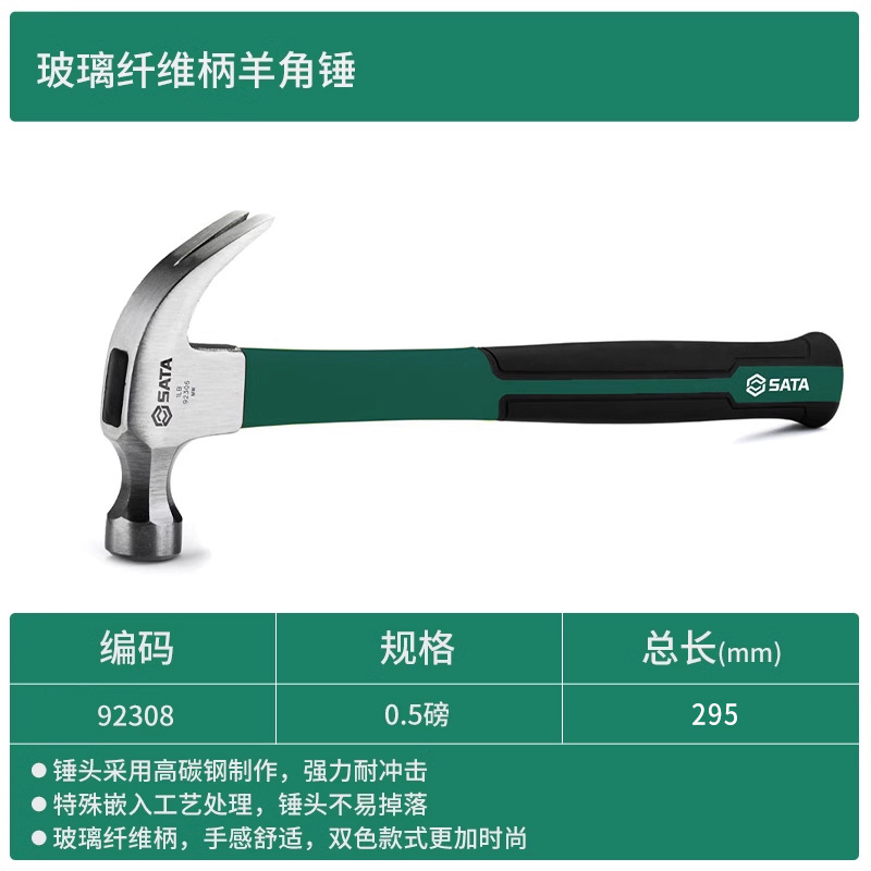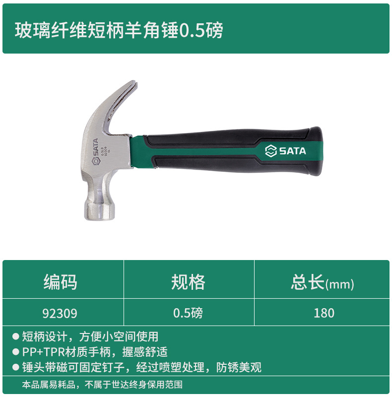• 92309/[유리 섬유 짧은 손잡이 클로 해머] 0.5 파운드 (180MM 길이)