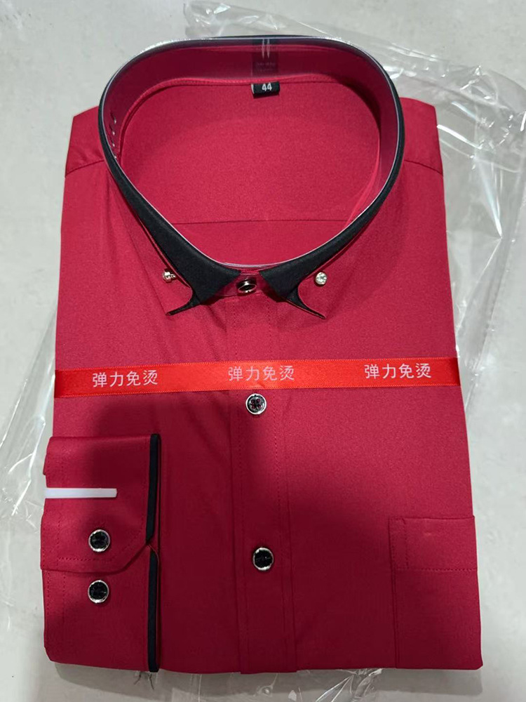 새로운 비즈니스 캐주얼 남성 셔츠 봄과 가을 대비 칼라 탄성 긴 소매 편안한 비 철 탑 청소년 단색