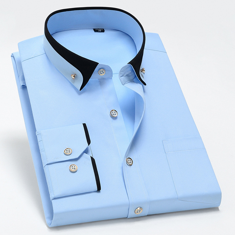 새로운 비즈니스 캐주얼 남성 셔츠 봄과 가을 대비 칼라 탄성 긴 소매 편안한 비 철 탑 청소년 단색스토어 가기