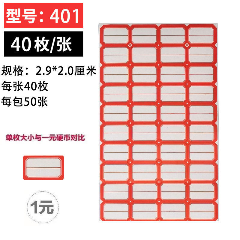 • 401 (29*20mm) 이름 적기-빨간색 1팩 [50장]