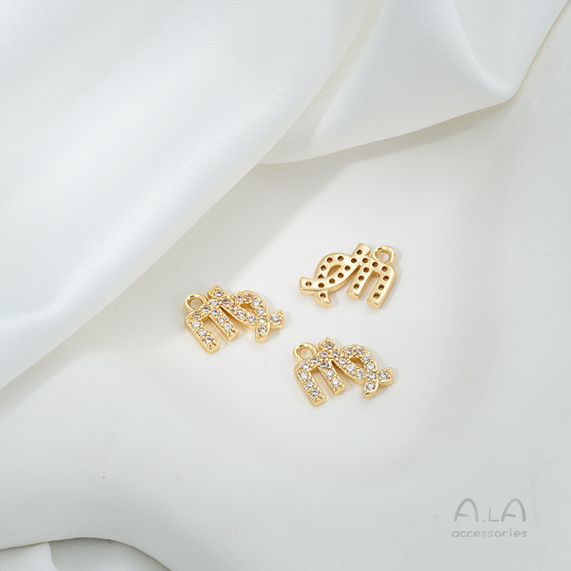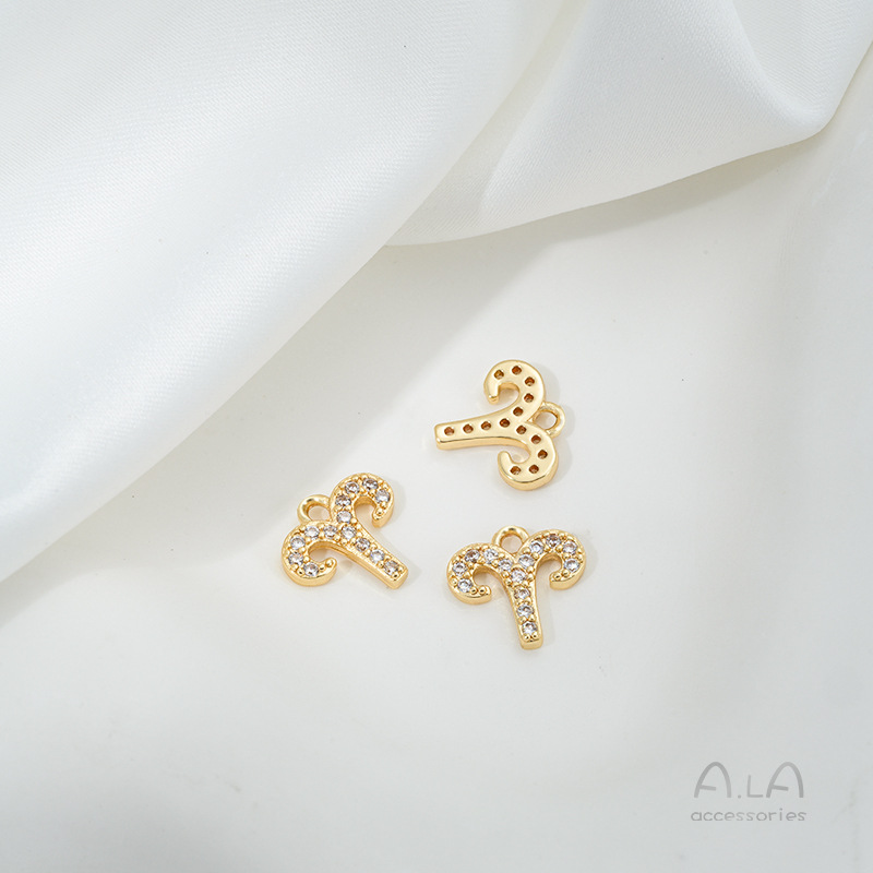 삽입 된 지르콘 14K 골드 컬러 12 12 별자리 펜던트 DIY 수제 보석 팔찌 목걸이 귀걸이 펜던트