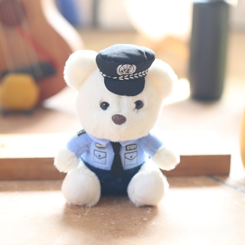 인터넷 인기있는 귀여운 교통 경찰 곰 펜던트 봉제 장난감 인형 소방 경찰 가방 펜던트 키 체인 인형스토어 가기