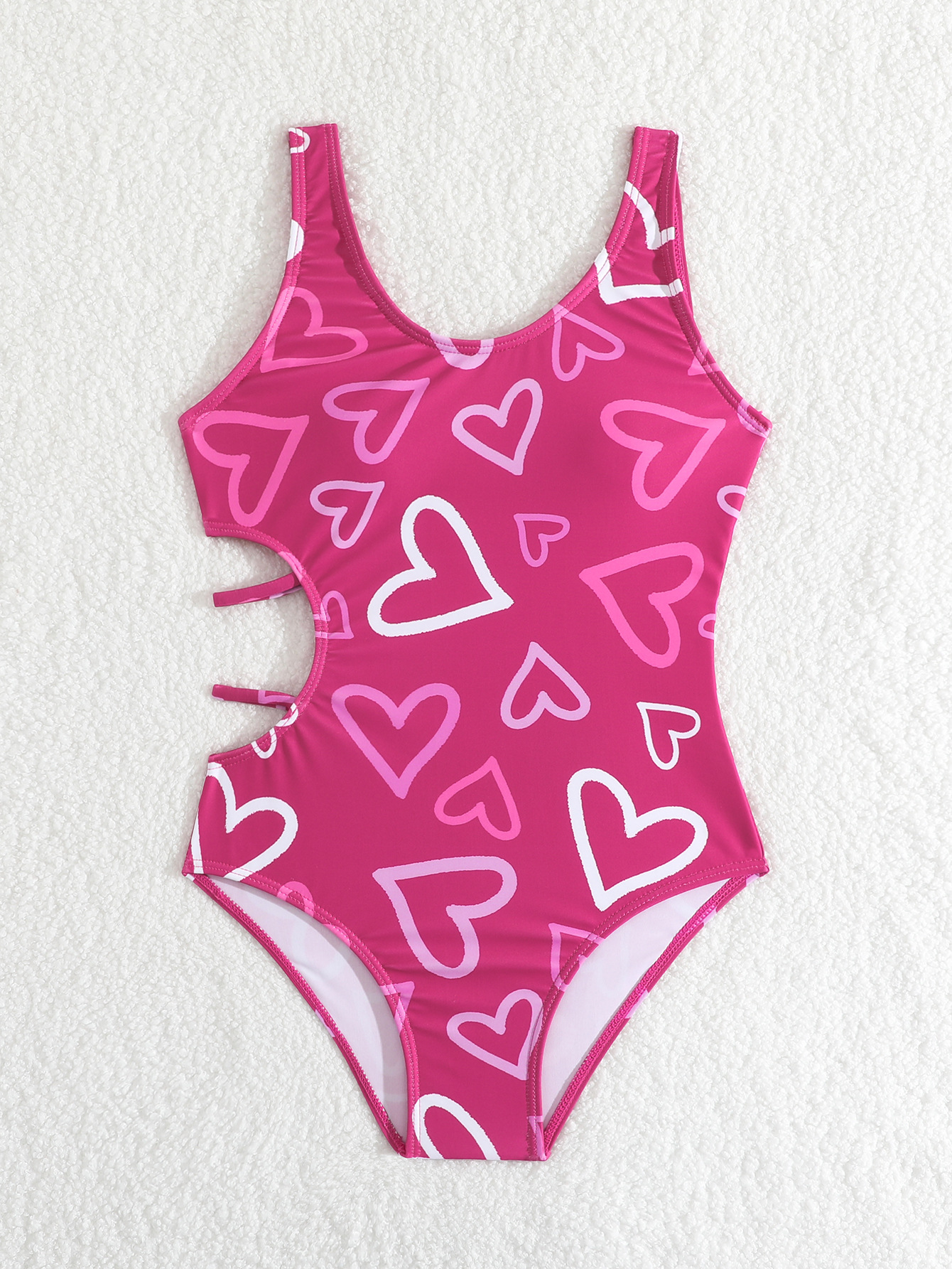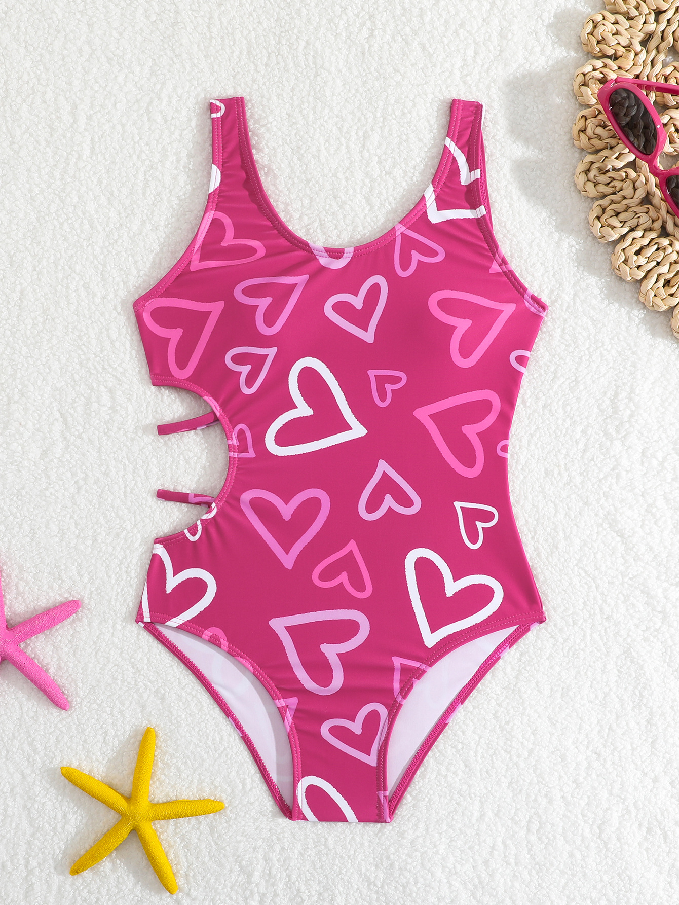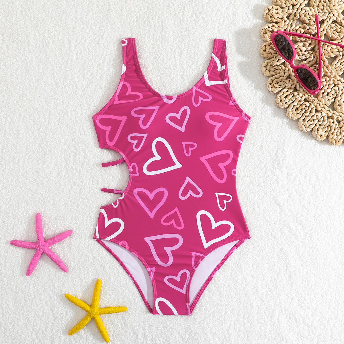 2025 아동용 수영복, 심플한 하트 프린트 원피스 여아용 유럽 및 미국 스타일 비키니, 아마존 속이 비치는 수영복스토어 가기