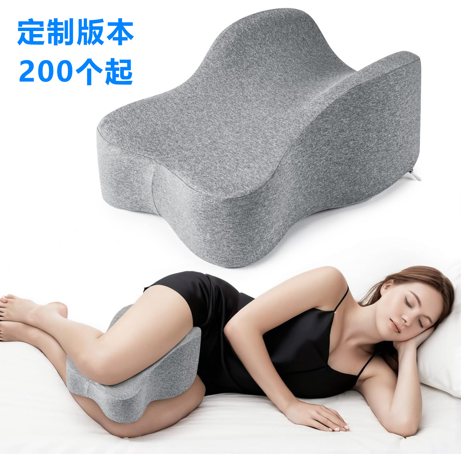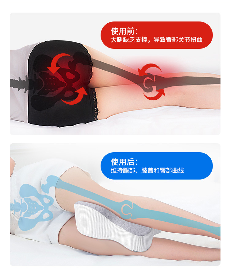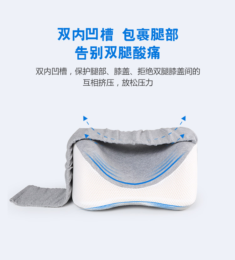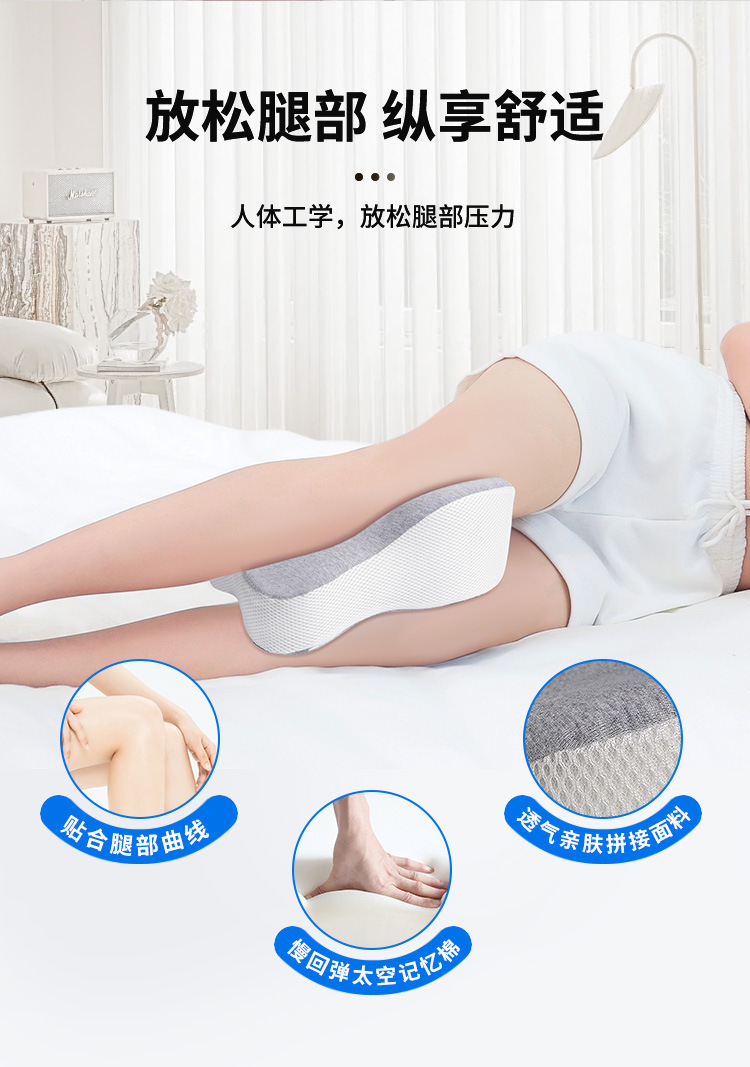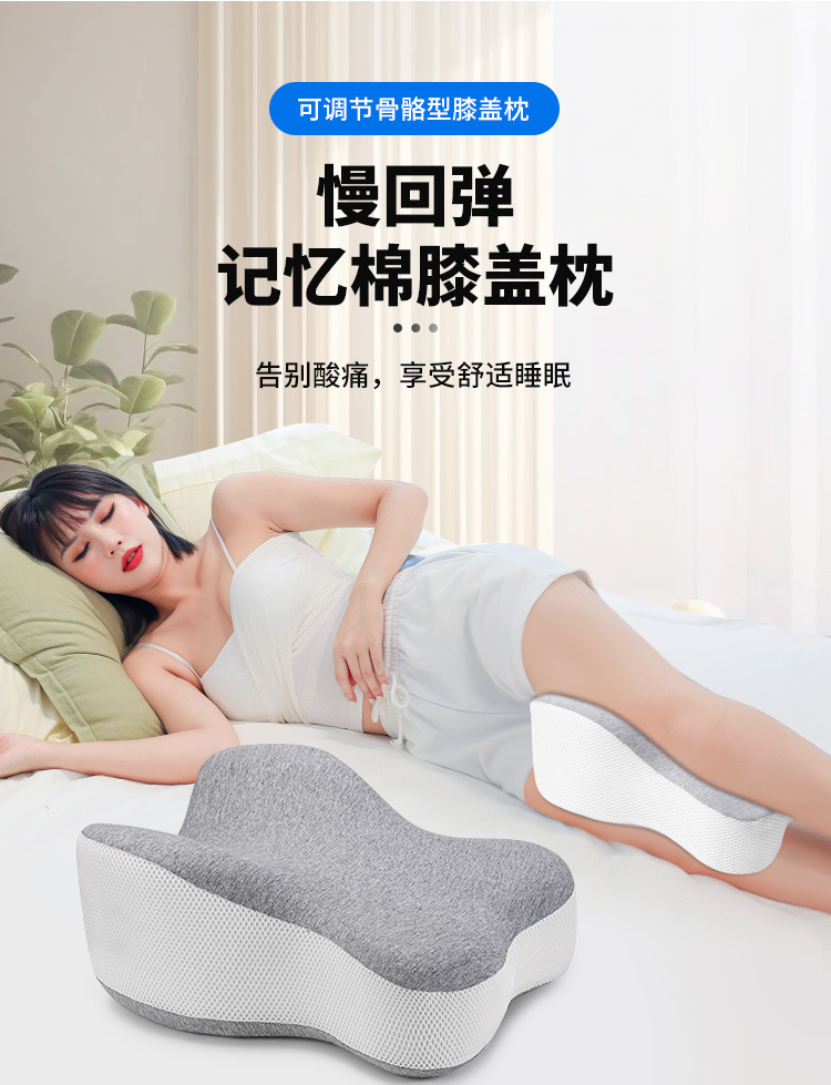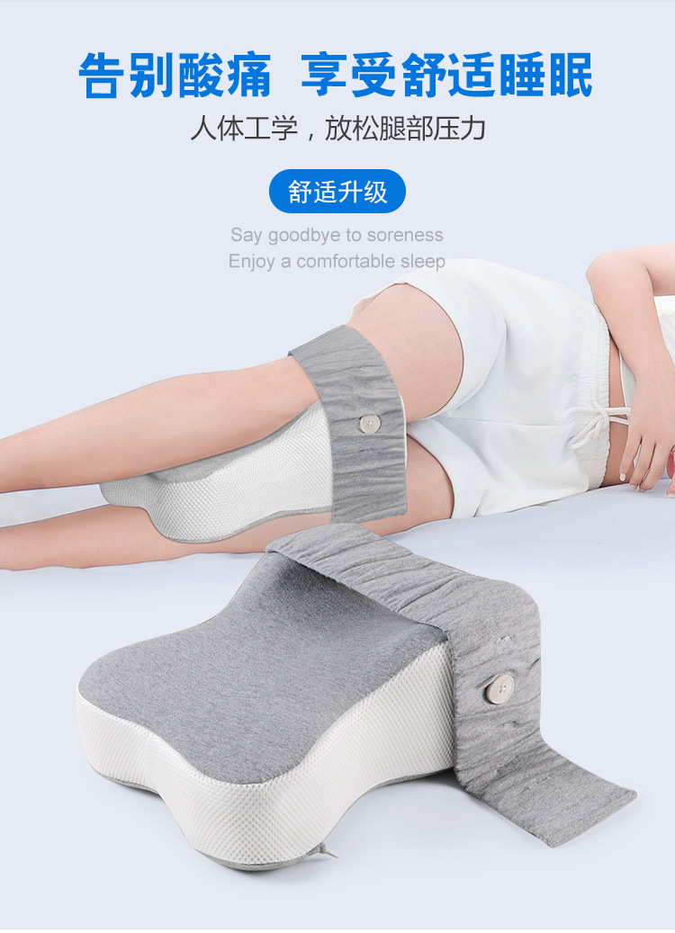 수면용 메모리 폼 무릎 베개, 옆으로 누워 있는 다리 베개, 뼈 조절 가능한 무릎 베개, 면 커버, 메쉬 베개