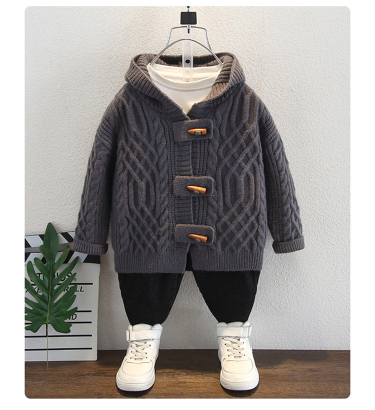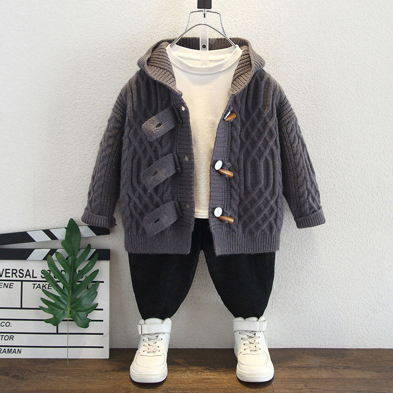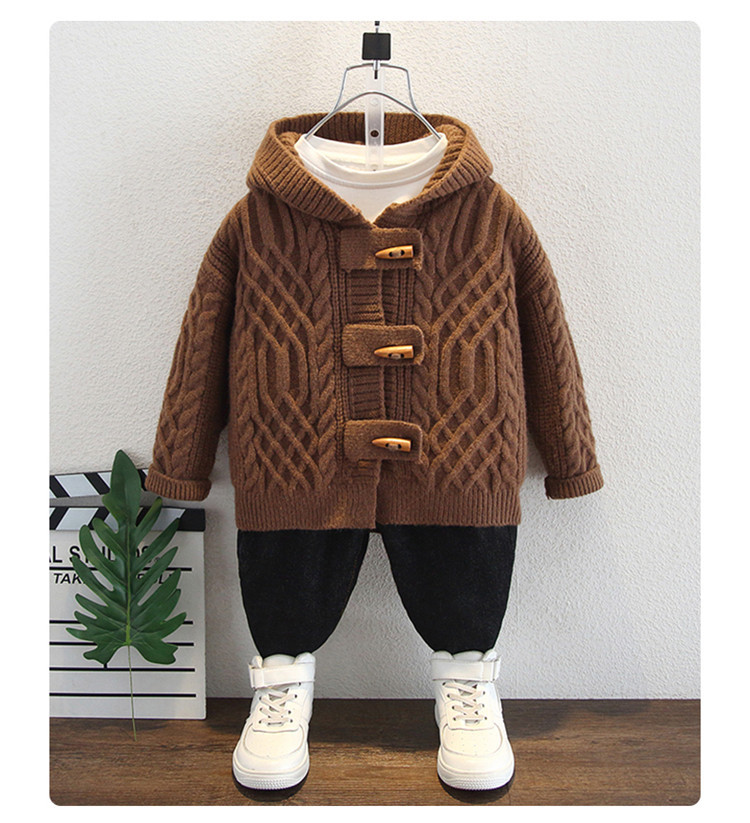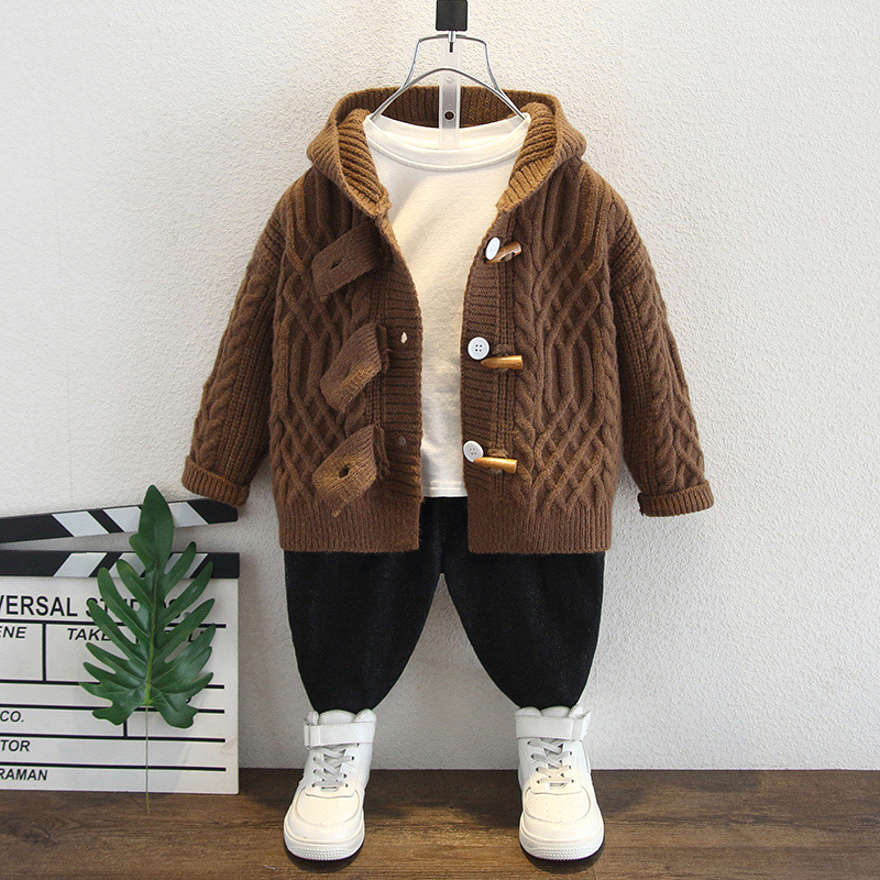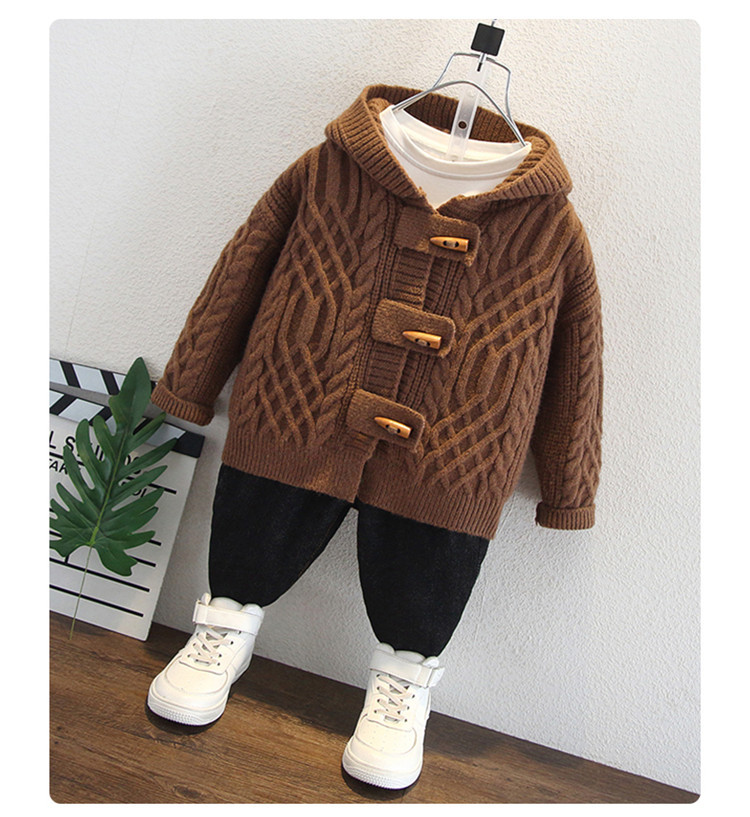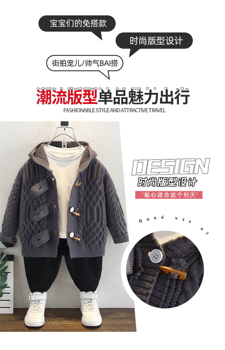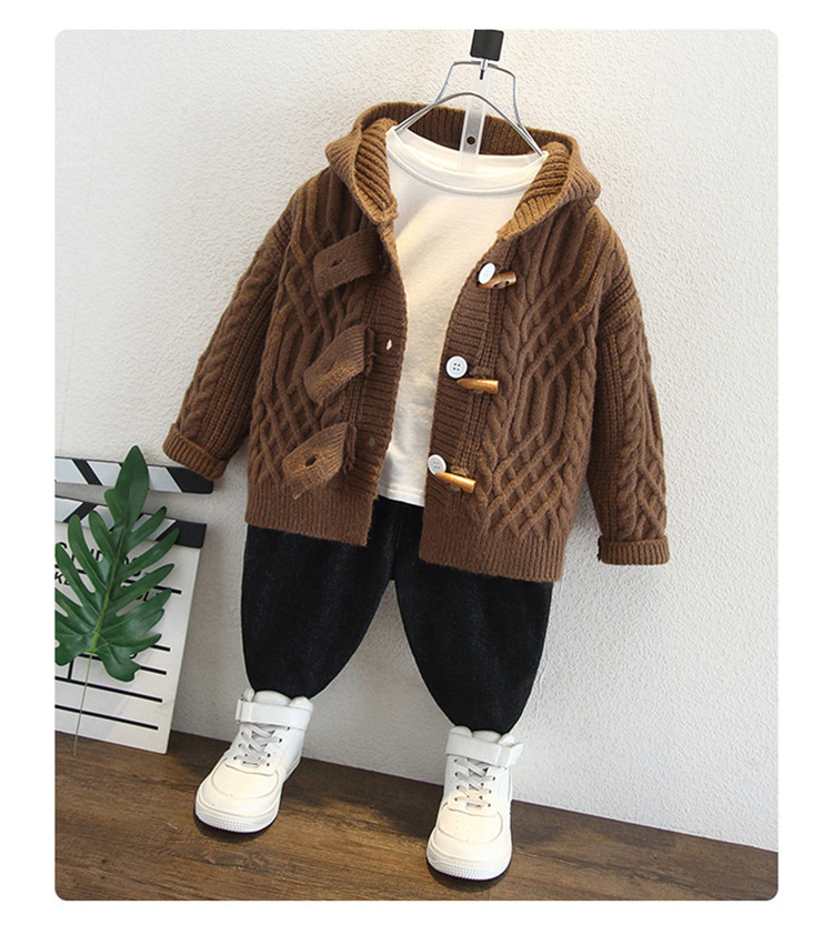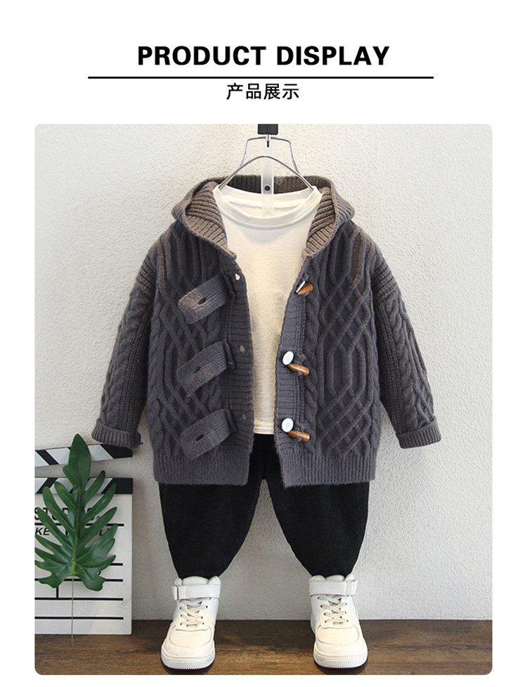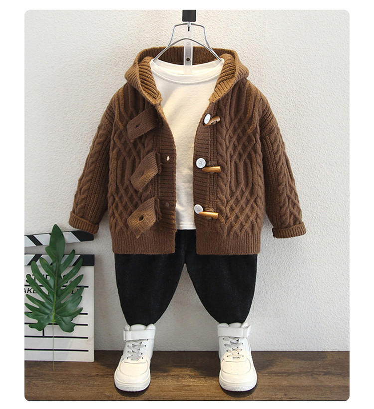 어린이 봄과 가을 뿔 버클 스웨터 카디건 코트 2024 가을 새로운 한국 쿨 핸섬 베이비 탑 트렌디스토어 가기
