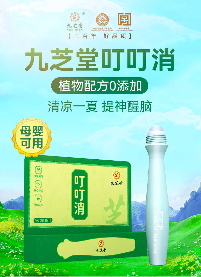 정품 Jiuzhitang Dingding 임신 및 유아용 모기 구충제, Lithospermum 진정 스틱, 상쾌하고 상쾌한 화장수스토어 가기