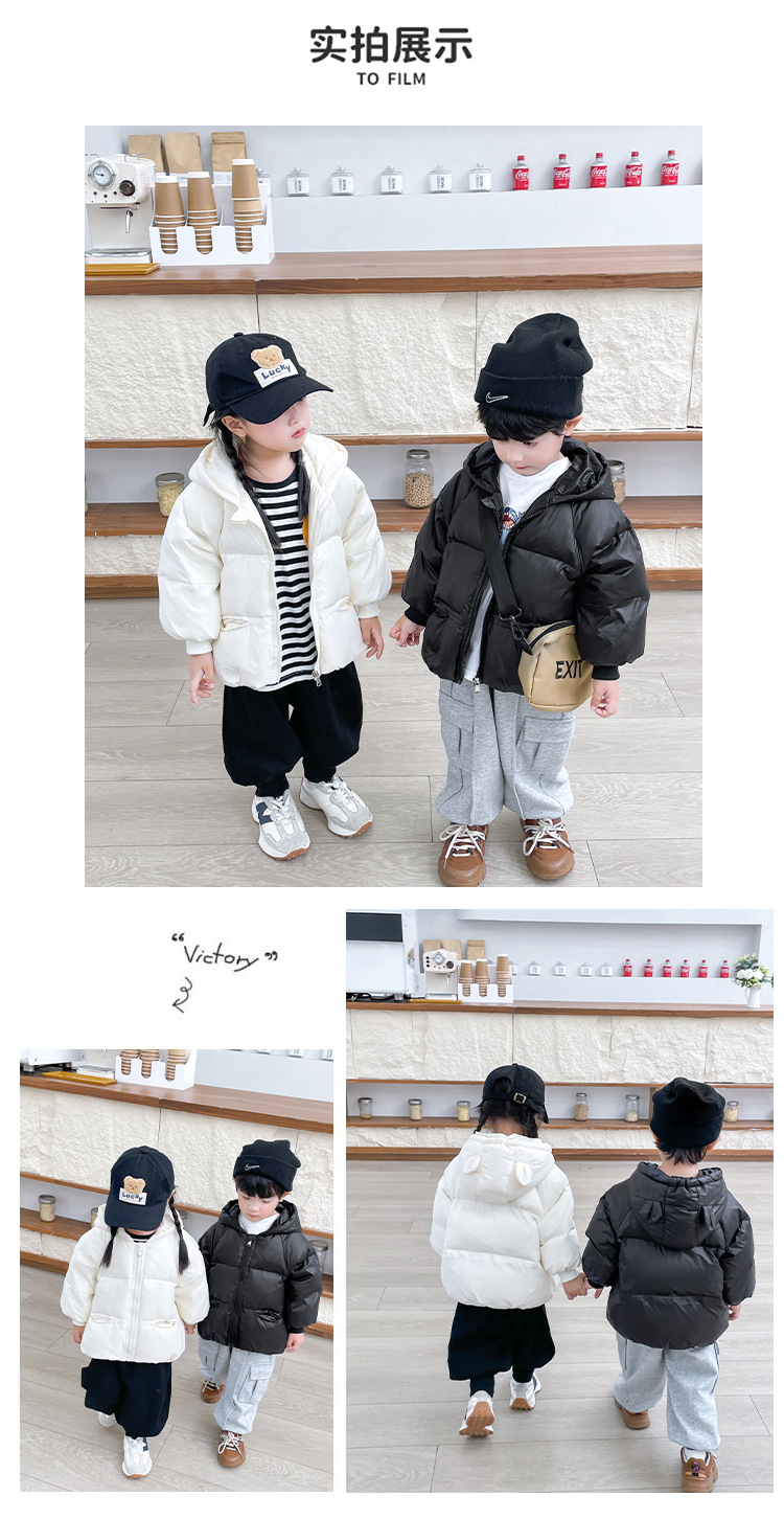 2024 어린이 가을과 겨울 두꺼운 코트 소년과 소녀 겨울 두꺼운 코트 아기 함부르크 빵 세트스토어 가기
