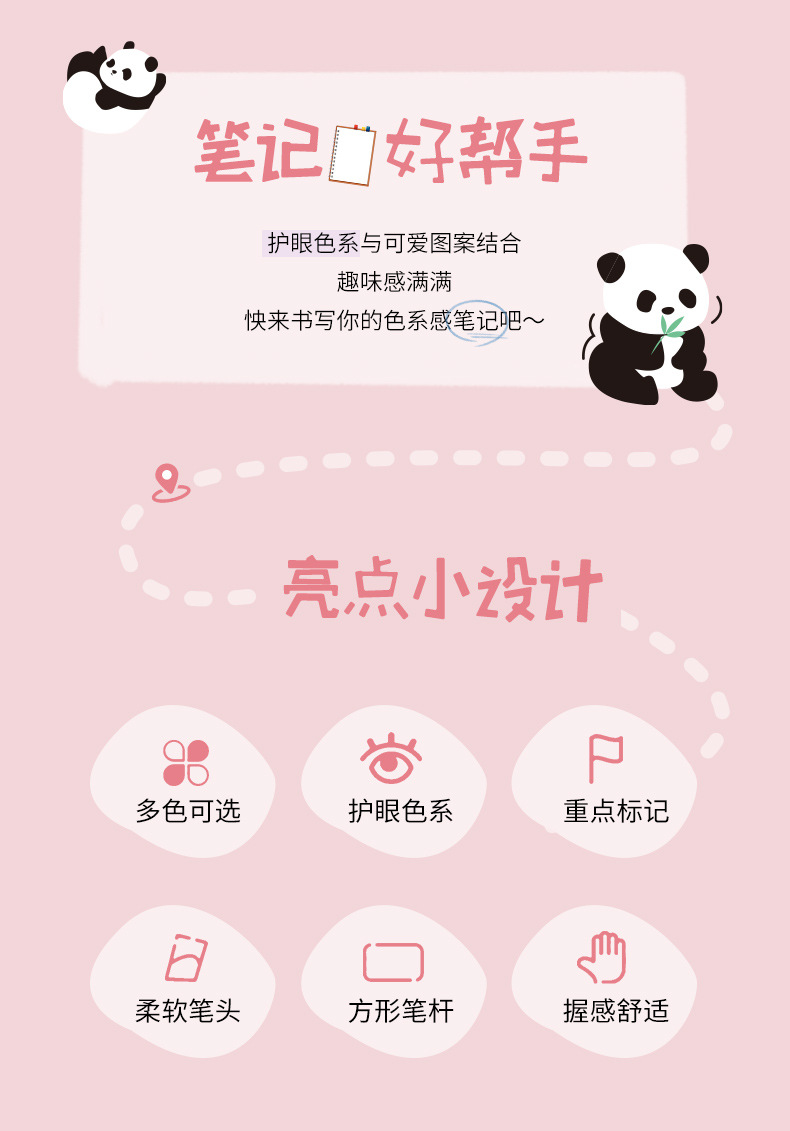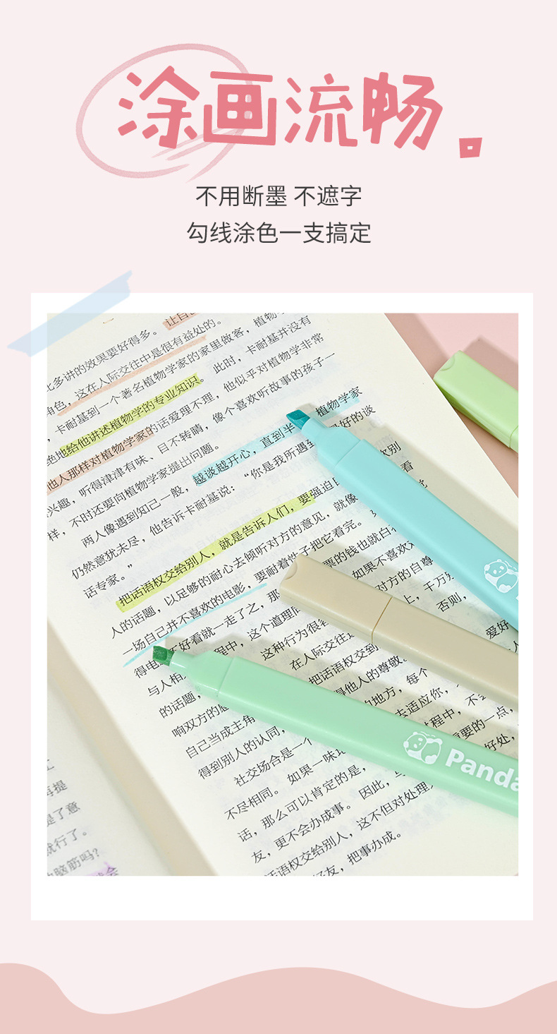 높은 얀 가치 팬더 하이라이트 학생들은 키 마킹 펜 4 문구 작은 선물 부드러운 머리 눈 보호 마킹 펜 그리기스토어 가기