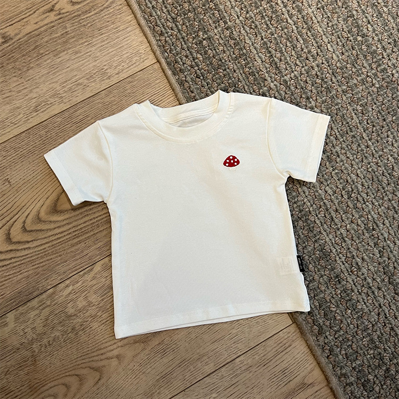 버섯 자수 마스크 T! 아기의 여름 멋진 스트레치 탑 아기의 면베이스 셔츠 부드러운 티셔츠스토어 가기