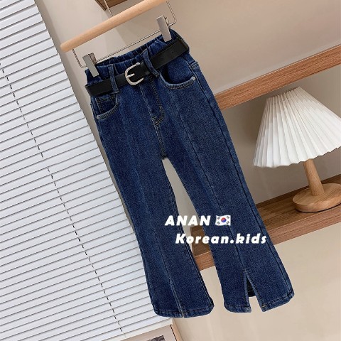 새로운 2025 여아 청바지, 봄, 가을 스타일 캐주얼 바지, 아동용 워싱 패셔너블 슬릿 한국식 나팔바지