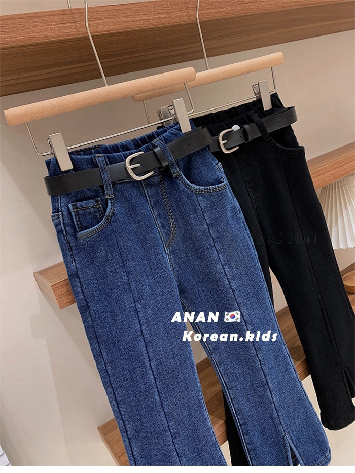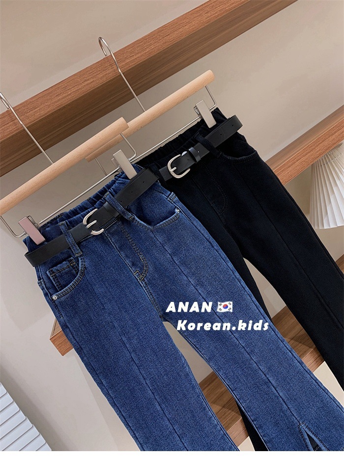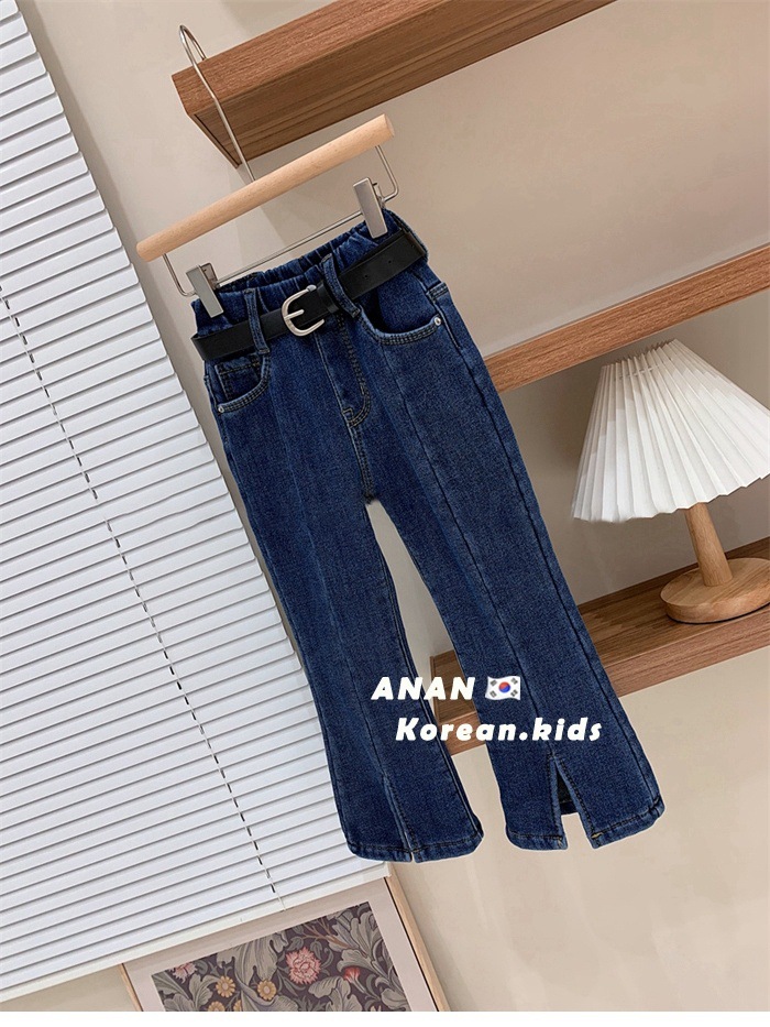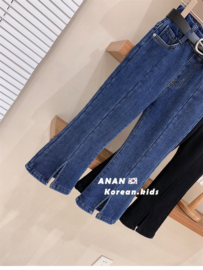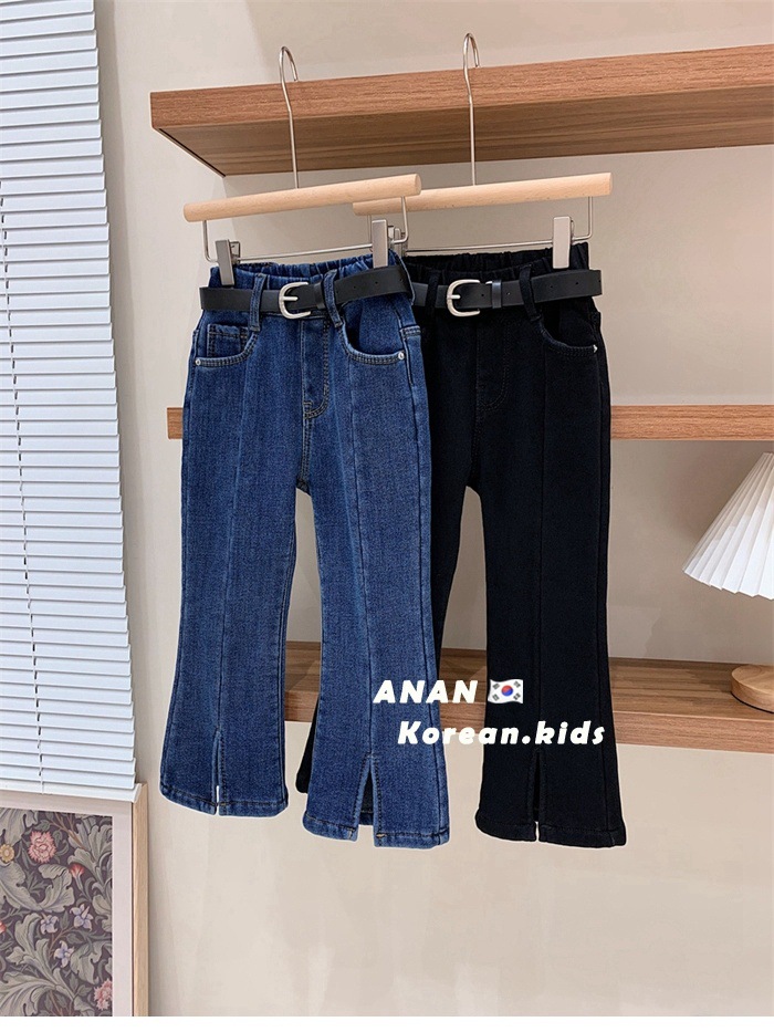 새로운 2025 여아 청바지, 봄, 가을 스타일 캐주얼 바지, 아동용 워싱 패셔너블 슬릿 한국식 나팔바지스토어 가기