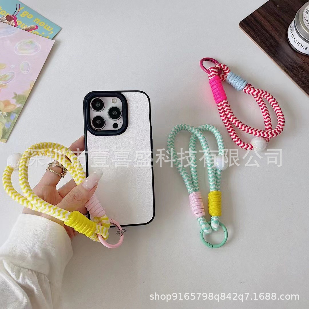 여름 대비 컬러 도파민 바람 휴대 전화 끈 하이 엔드 비즈 휴대 전화 케이스 안티 분실 헤드폰 가방 끈 클립