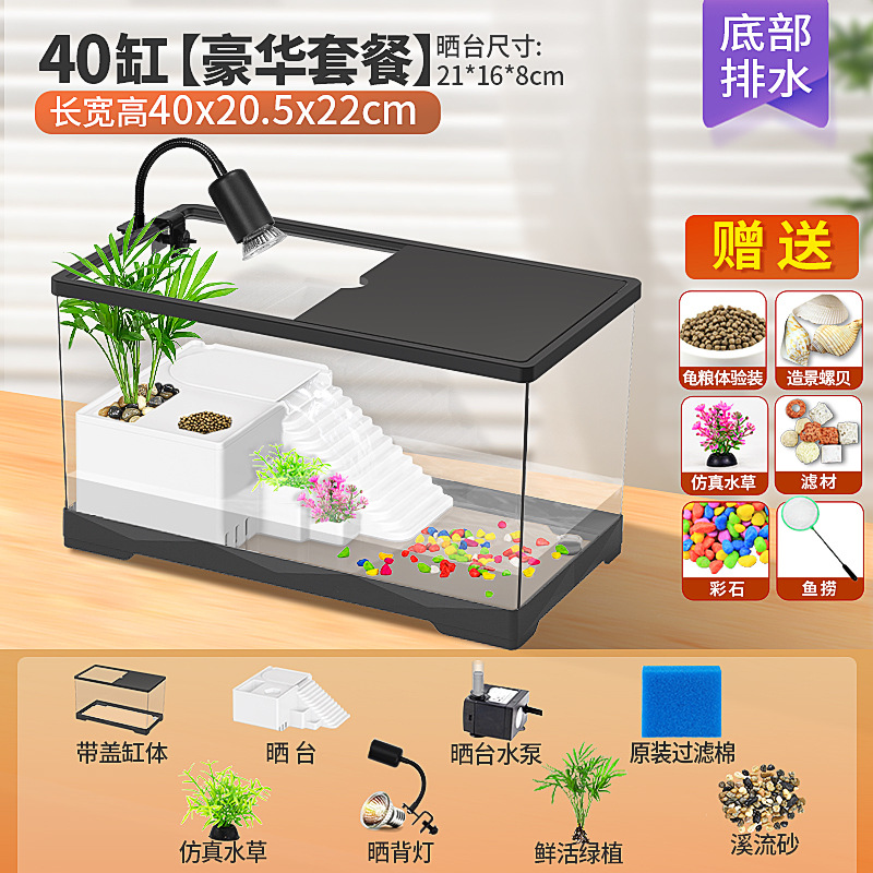 거북이 탱크, 거북이 사육 탱크, 테라스 등반 플랫폼이 있는 가정 조경, 플라스틱 생태 수조, 중소형 필터 탱크, 새로운 스타일스토어 가기