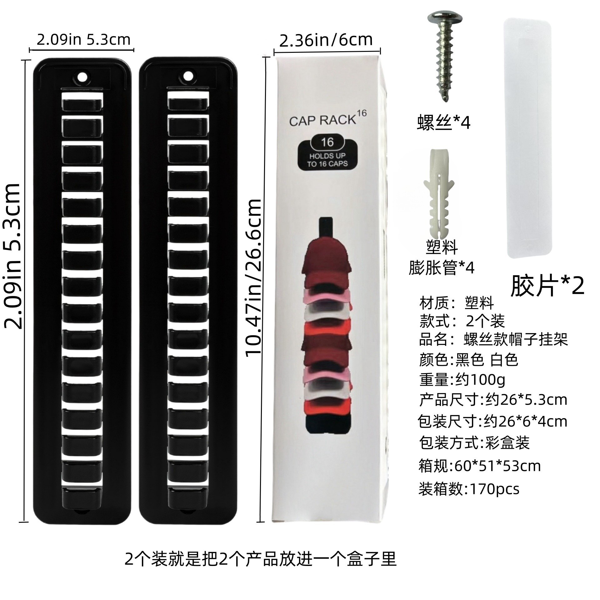 产品名称:螺丝款帽子挂架 颜色:黑色 白色