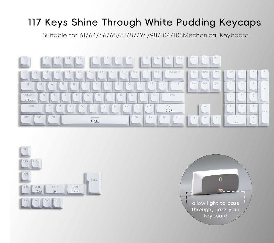 XVX 푸딩 하이트 듀얼 컬러 PC+PBT 투광형 정면 각인 문자 투광형 맞춤형 기계식 마그네틱 스위치 키보드용스토어 가기