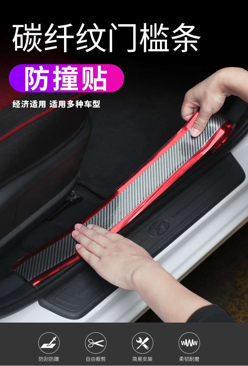 카실 바 카본 솔더 패턴 도어 보호 스티커 페달 수정 트림 스트립 탄소 섬유 패턴 도어 에지 충돌 방지 스티커스토어 가기