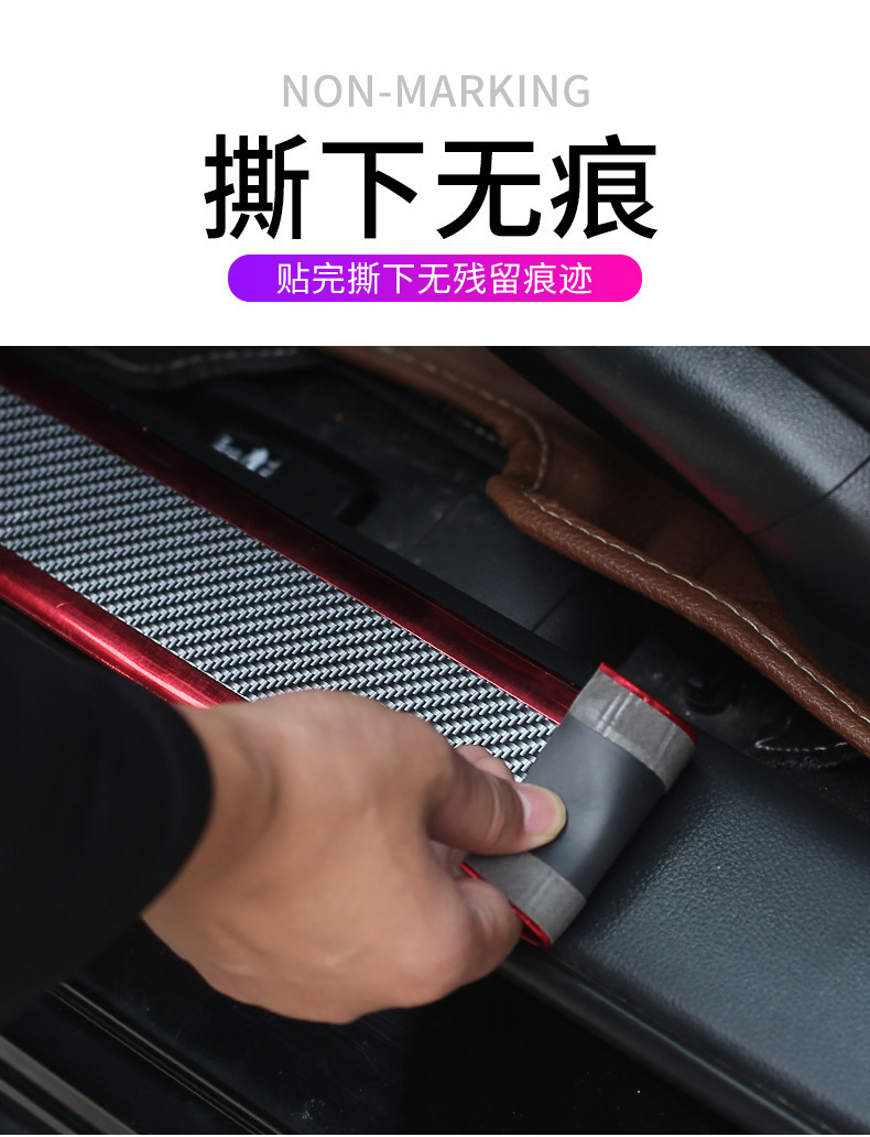 카실 바 카본 솔더 패턴 도어 보호 스티커 페달 수정 트림 스트립 탄소 섬유 패턴 도어 에지 충돌 방지 스티커