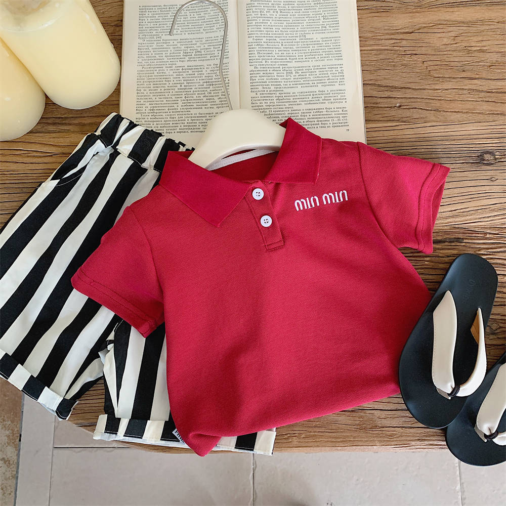 아동용 폴로 셔츠, 남아용 한국식 반팔 아동용 2025 여름 솔리드 컬러 자수 문자 티셔츠, 수분 흡수 및 땀 배출 기능