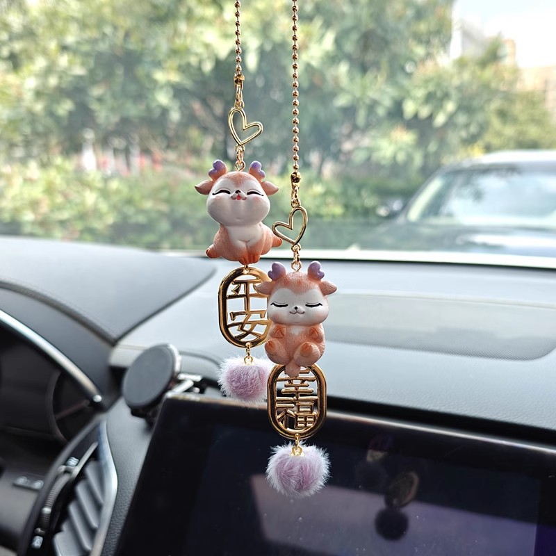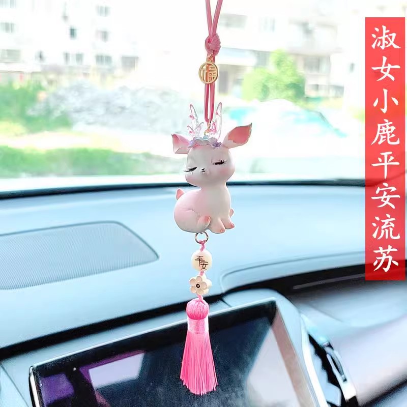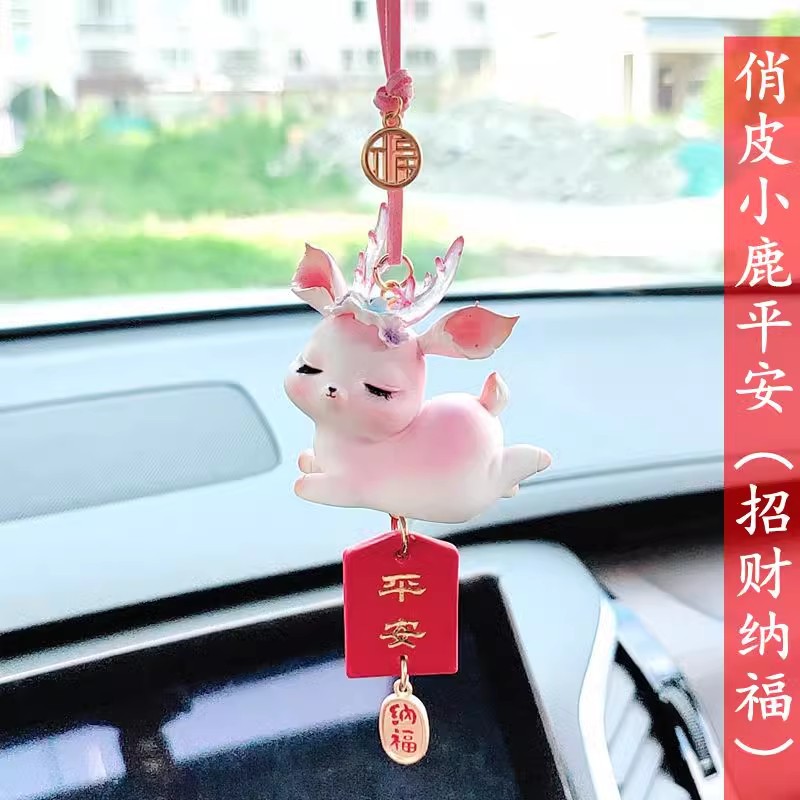 안전한 여행 자동차 펜던트 2024 새로운 자동차 안전 펜던트 귀여운 사슴 백미러 보석 펜던트
