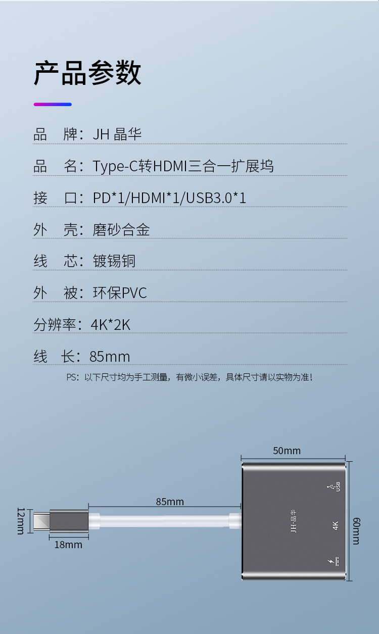 Jinghua type-c에서 hdmi 3 대 1 확장 도크 TV 프로젝터 어댑터 허브 도킹 스테이션스토어 가기