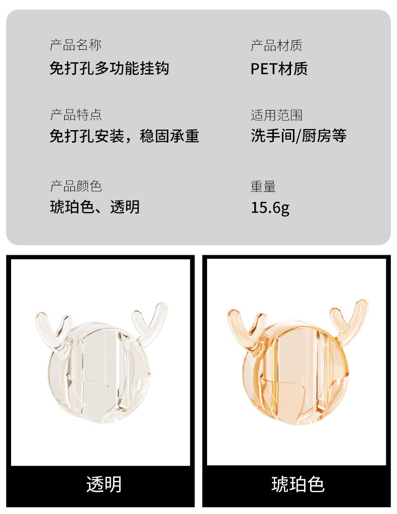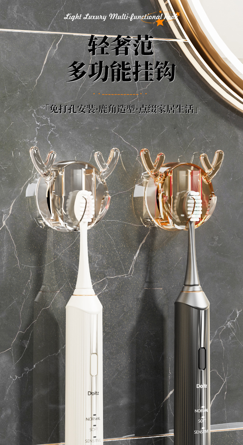 앤틀러 천공되지 않은 끈적 끈적한 후크 칫솔 랙 만화 욕실 플러그 후크 다기능 스토리지 랙 랙 도매