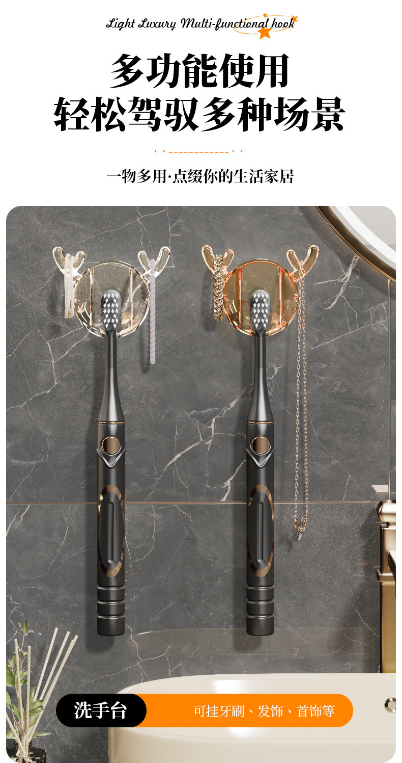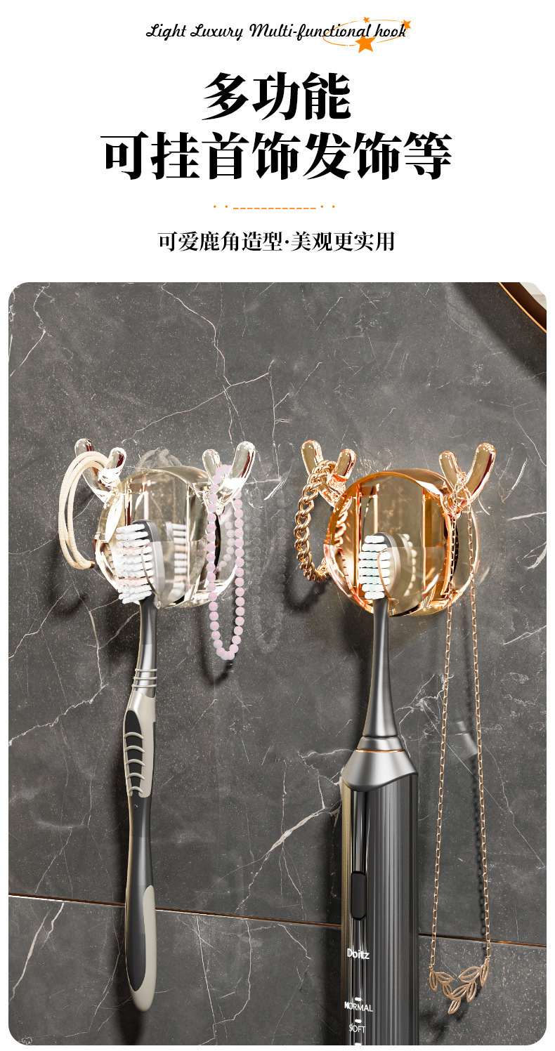 앤틀러 천공되지 않은 끈적 끈적한 후크 칫솔 랙 만화 욕실 플러그 후크 다기능 스토리지 랙 랙 도매스토어 가기