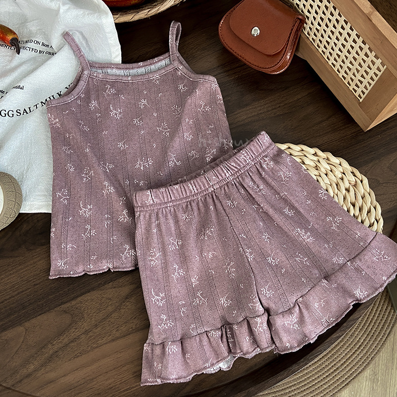 소녀 여름 슬링 반바지 홈 의류 세트 아기 소녀 꽃 에어컨 옷 어린이 파자마 어린이 의류 0052A057