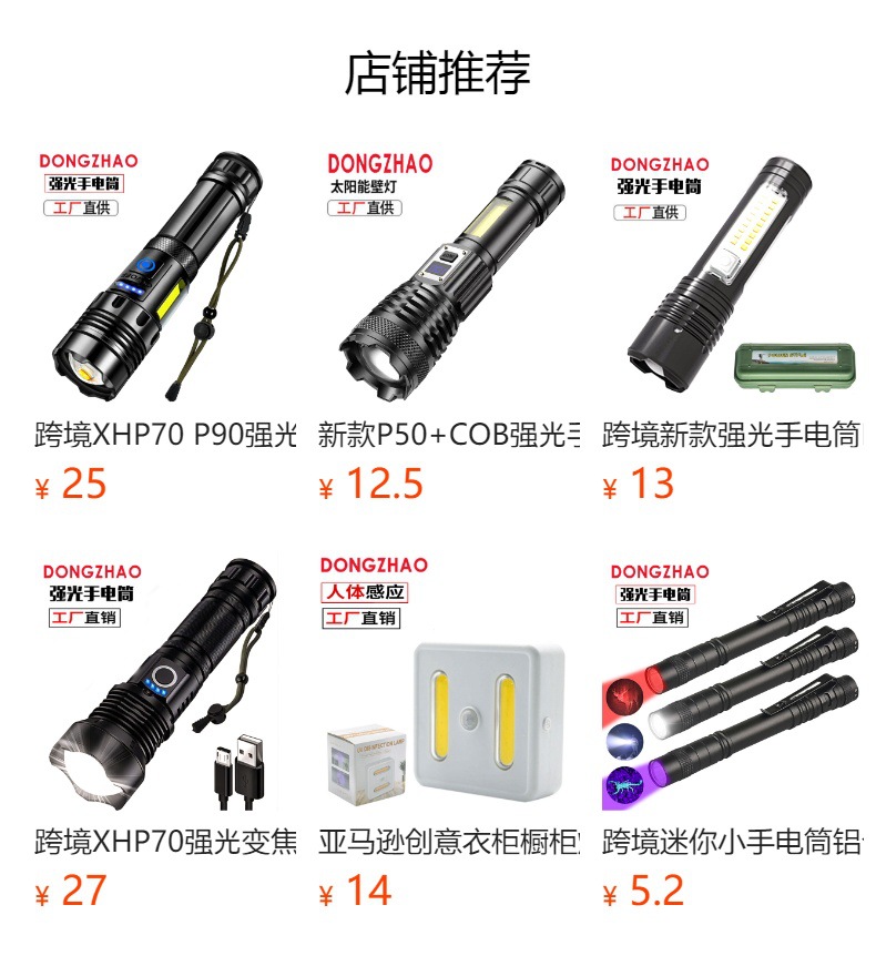 照明亮度:150-250LM(P50强光223弱光120LM)