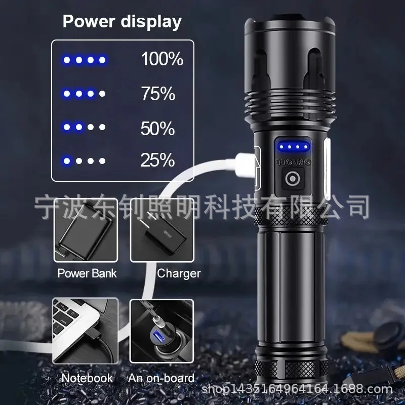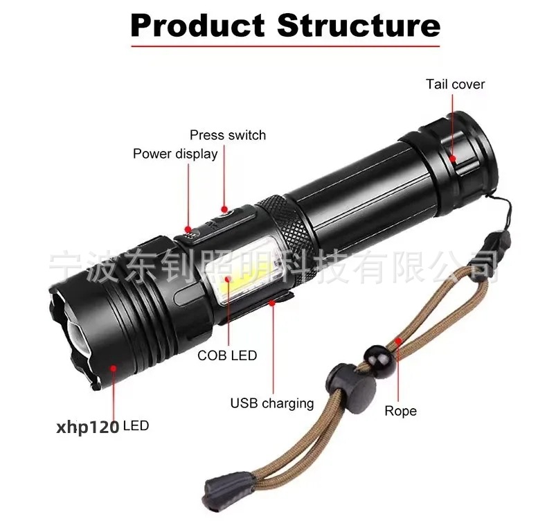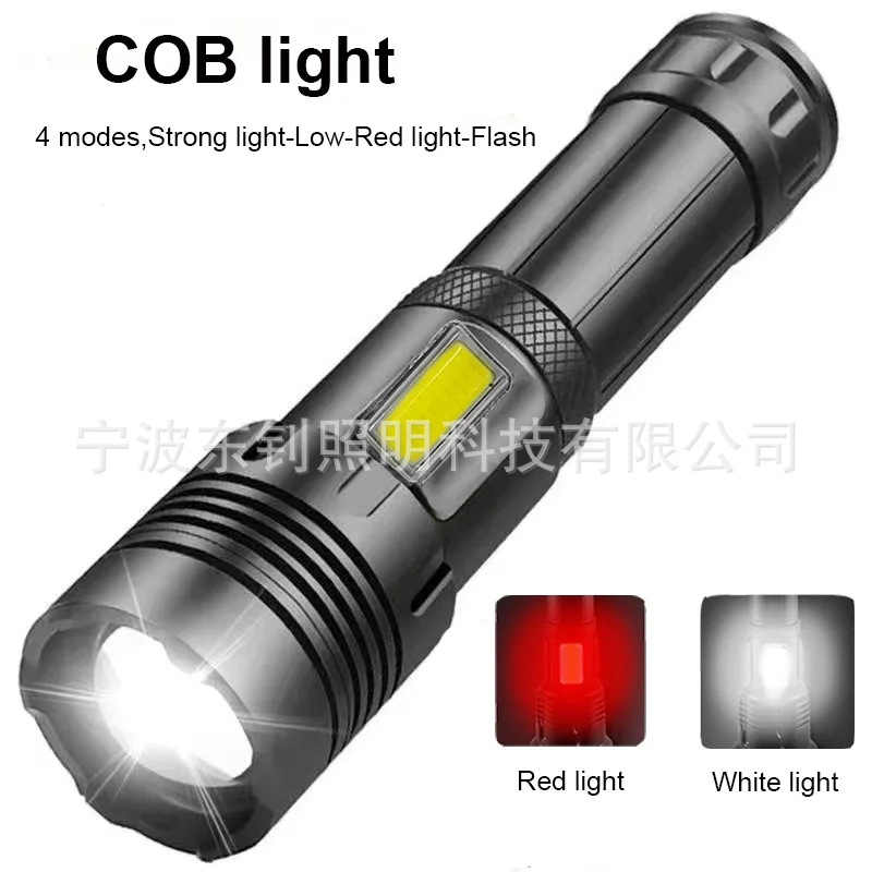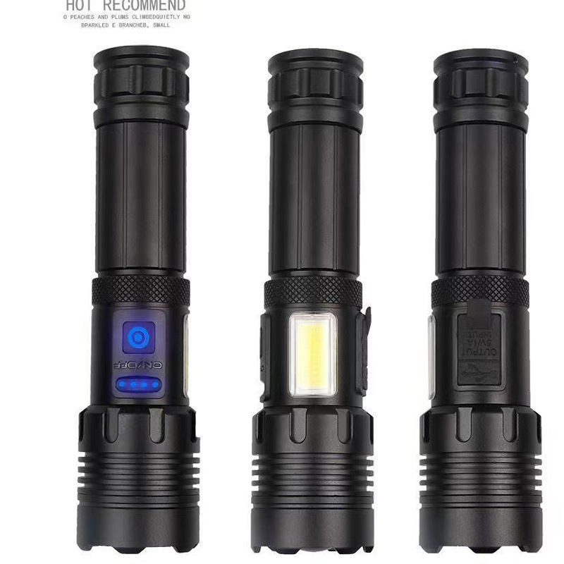 국경 간 플라스틱 P50 강한 빛 줌 손전등 COB 사이드 라이트 USB 충전 내장 배터리 화이트 레이저 손전등스토어 가기