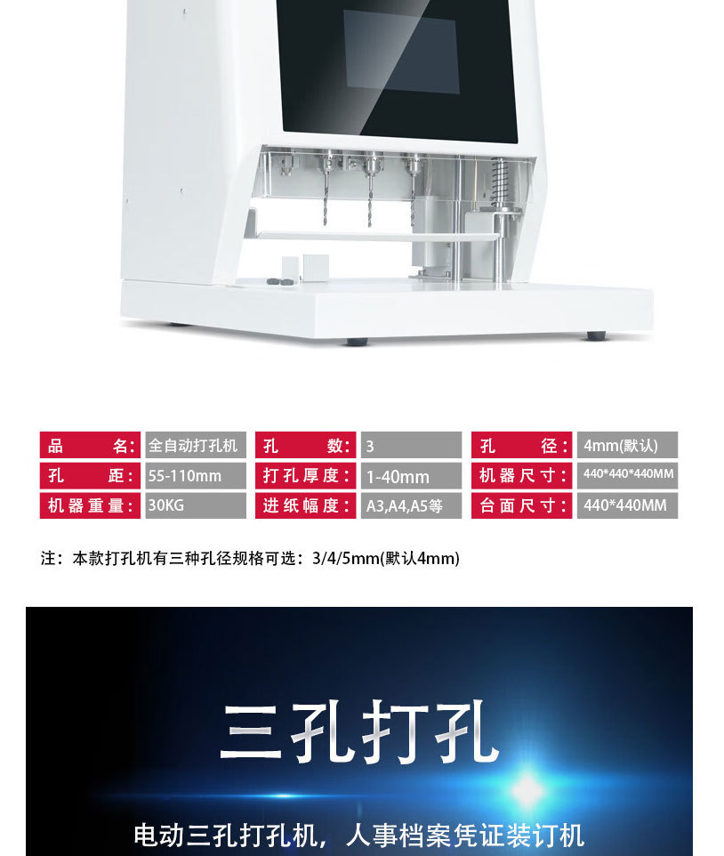 Gepai GP-ZD400 자동 펀칭 기계 3 홀 드릴 나이프 펀칭 기계 파일 바인딩 기계 간격 조정 가능
